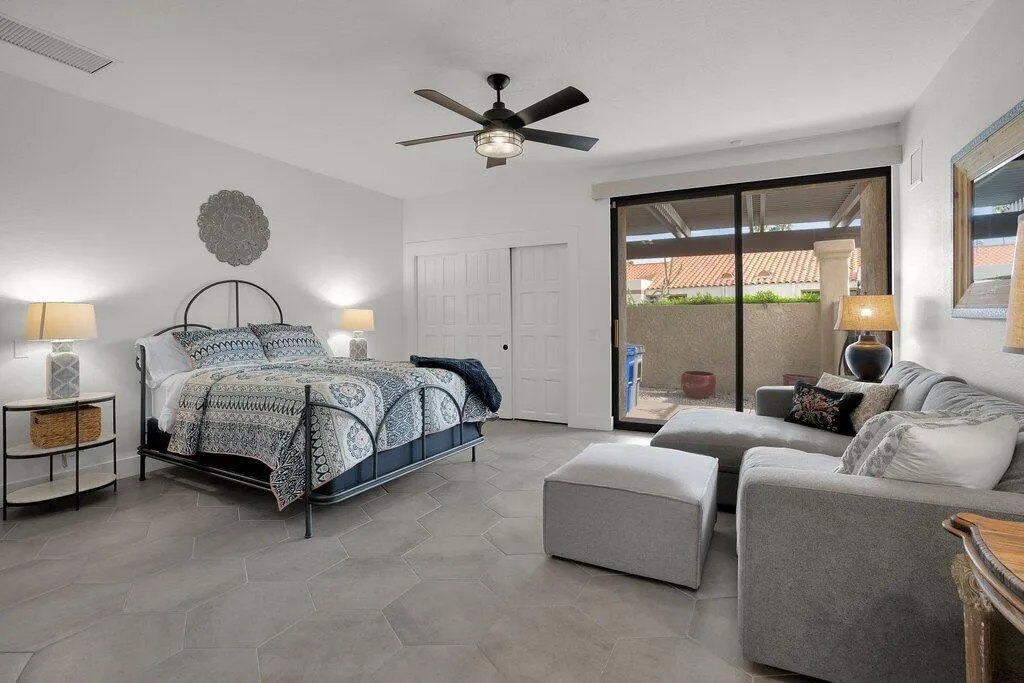 Welcome to Club La Quinta, ideally positioned in the heart of La Quinta, a stone’s throw away from the renowned La Quinta Resort and within the iconic La Quinta Country Club community. This generously proportioned 2-bedroom, 2 1/2-bathroom condominium offers the ultimate retreat to experience the best of Desert living. Spanning over 2000 square feet, revel in breathtaking western Santa Rosa vistas from the expansive living space. Every square foot of this home has been upgraded! The beautifully remodeled chef’s kitchen really steals the show with the custom alder wood vent hood and tile back splash to accent the double oven range. Entertain effortlessly under the custom wood beam accents and within the flow of the expansive living space and countertop bar with ample seating. The primary suite boasts a spacious walk-in closet and a luxurious bathroom with shower, dual vanities, and dedicated vanity adjacent dressing area. The dueling bedroom suite and bathroom are not to be forgotten. Park with ease in the attached garage for two cars, supplemented by a separate golf cart garage ideal for additional storage needs. Just steps away, indulge in relaxation at the community pool and spa. Enjoy easy access to La Quinta Country Club via golf cart or pedestrian walkway, a distinguished host of the American Express Golf Tournament. Old Town La Quinta’s vibrant dining and shopping scene awaits just moments away. Offered unfurnished. This home truly stands above the rest. Schedule your private tour today!