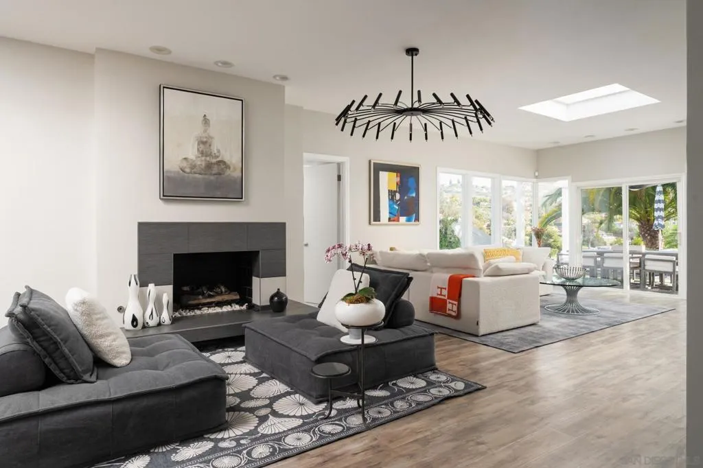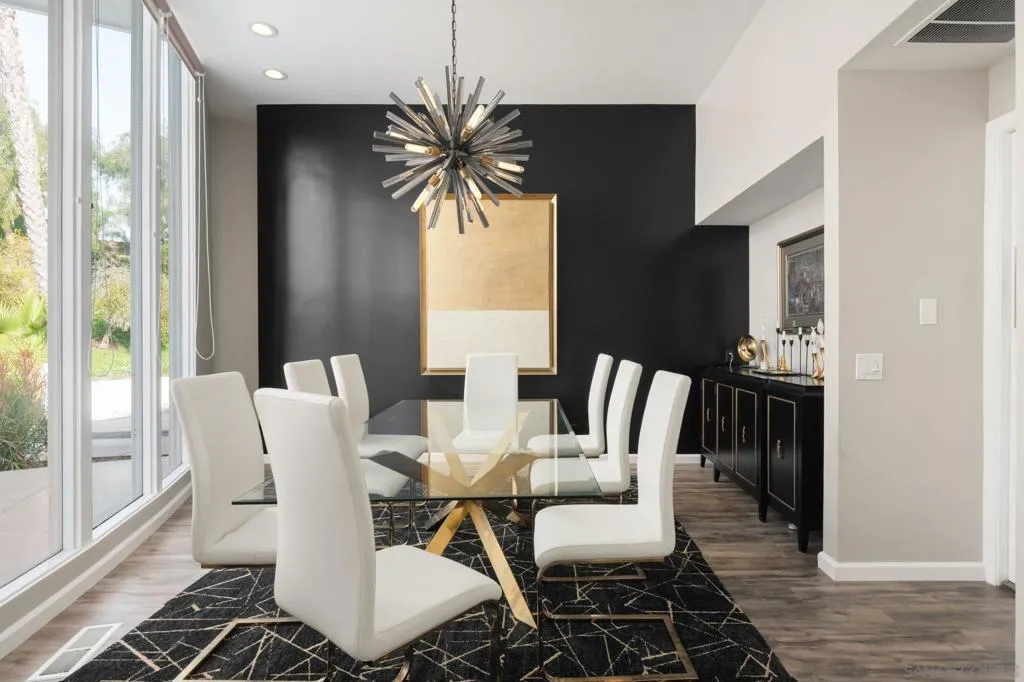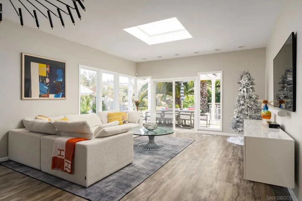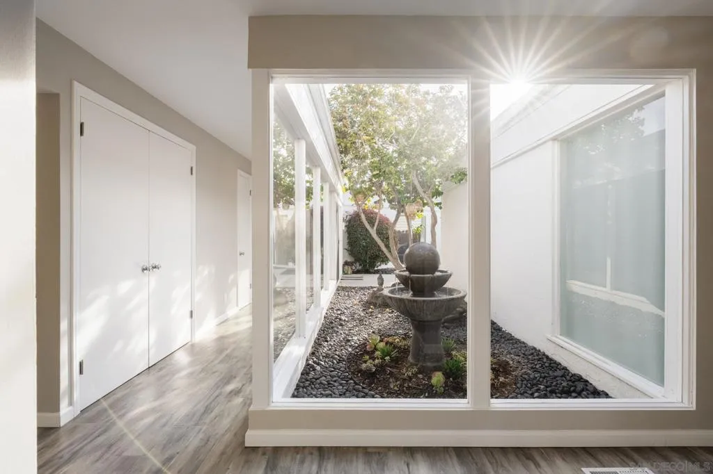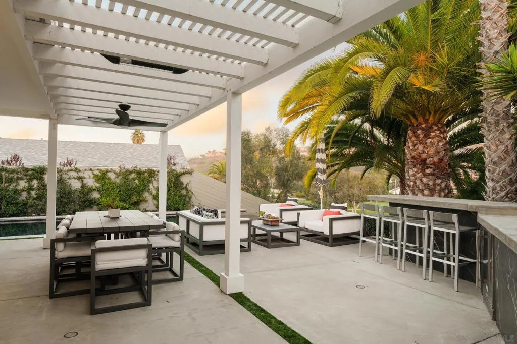 Front-row on the iconic Champions Course at Omni La Costa, this striking single-story estate is set on a premier lot overlooking the 3rd hole. Spanning 3,720 square feet with 5 bedrooms and 3.5 bathrooms, the home offers a resort-style backyard with a brand-new infinity-edge pool and spa, plus a fully equipped outdoor kitchen. Expansive golf course and hillside views provide a stunning backdrop, while the open living and kitchen areas flow seamlessly to the outdoors, creating truly effortless indoor-outdoor living. A stunning glass atrium floods the home with natural light, emphasizing mid-century modern elegance and relaxed coastal style. Highlights include soaring columns, expansive walls of glass, 14-foot leaded entry doors, a private interior courtyard, and solar. Steeped in history and rumored to have hosted Old Hollywood legends including the Rat Pack, Lucille Ball, and Clint Eastwood, the home blends timeless charm with modern luxury. The chef’s kitchen, featuring quartz countertops, white shaker cabinetry, stainless steel appliances, and wine storage, opens to the open living space with sweeping golf course views, a custom bar, and fireplace – making this a truly special home in one of La Costa’s most sought-after neighborhoods.