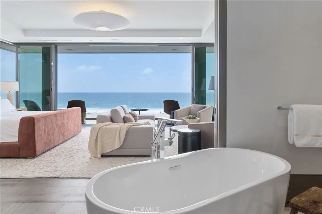 Step outside onto the spacious outdoor Strand level patio, where panoramic views of the Pacific Ocean await. Here, you’ll discover a true outdoor sanctuary complete with a Movable Floor Pool (convertible patio/pool) equipped with jets , providing the perfect setting for both relaxation and entertainment. Whether you’re soaking up the sun or enjoying a refreshing dip in the pool, this outdoor oasis is sure to impress. Indulge in alfresco dining experiences with the outdoor barbecue area or rinse off after a day at the beach in the convenient outdoor shower. Additional outdoor amenities include outdoor heaters, television, and a dedicated outdoor bathroom for added convenience and luxury.