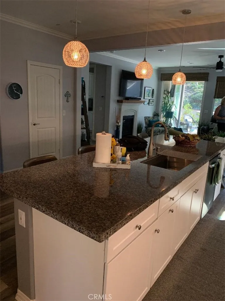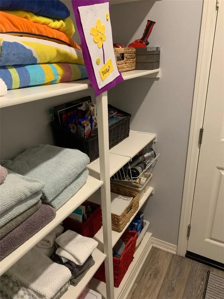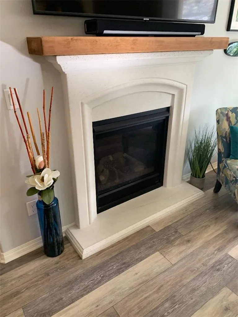 Master Bedroom Walk-In Closet, ensuite bathroom, soaking tub, enclosed shower, dual vanity sinks and white cabinetry. Upgrades: Crown Moulding, Laminate Flooring, Ceiling Fans, White Plantation Shutters, Fireplace, Whole-House Fan, kitchen Pendant Lighting above Granite Countertop, Under-Cabinet Lighting. Rain Gutters, Tankless Water Heater (serviced 12/25), Epoxy Floor, and Overhead Garage Racks!