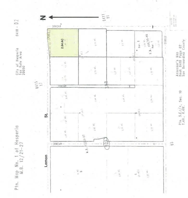 Corner commercial lot, quadrant in shape On I Ave. between Lemon street and G street. I Ave. is one of the two major arteries routes connecting cities of Victorville and Hesperia. Ideal for any commercial development. Zoned Commercial/Industrial.