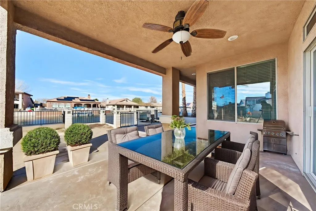 Welcome to Silver Lakes! This beautifully maintained 3-bedroom, 2-bath home offers comfortable desert living with access to private lakes, golf courses, and resort-style amenities. Featuring an open-concept layout, updated kitchen with stainless steel appliances, spacious living room with fireplace, and a large covered patio perfect for entertaining. The primary suite includes a walk-in closet and ensuite bath. Enjoy boating, tennis, fishing, and community pools—all included with HOA. Conveniently located between Victorville and Barstow, this home delivers both tranquility and value in the heart of Helendale. One or more photos has been virtually staged.