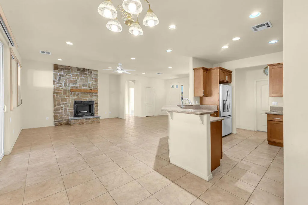 Nestled in a peaceful 55+ community in Desert Hot Springs, this beautiful three bedroom home offers comfort, convenience and breathtaking mountain views overlooking the Coachella Valley. The layout features a bright living room area with a gas fireplace perfect for relaxing or entertaining, kitchen with ample cabinet space. And a primary suite complete with a walk in tub for ease and comfort.Step outside to enjoy a gorgeous backyard designed for both serenity and social gatherings- ideal for morning coffee or sunsets. This home combines a vibrant community lifestyle with the privacy and beauty of desert living.