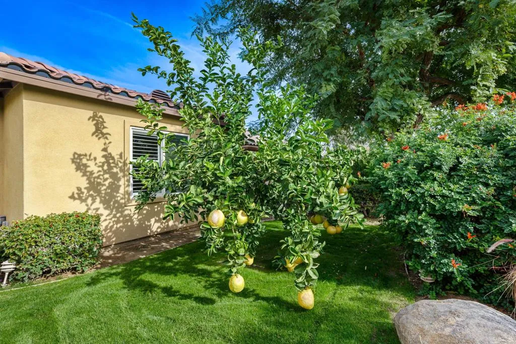 Welcome to the renown Indian Palms Country Club! With close proximity to downtown Indio and the Polo Fields, this home blends the active desert lifestyle with the peace and quiet of a quaint and lightly used cul-de-sac. This 2-bed plus office, 2.5 bath home features 1808 sq ft of living space with tall ceilings, an open floor plan, as well as an office! Plenty of room to entertain friends or family! The Chef’s Kitchen features a large island with lots of storage space, a sizable pantry, as well as a convection oven. Head to the South-facing, covered back patio to find a serene pond setting with multiple fruit trees, perfect for watching the sunrise or sunset. The primary suite features dual vanities, a walk-in closet, soaking tub and separate water closet. The office, powder room and separate laundry room wrap up the home. Last but not least, step into the oversized 2.5 car garage that will provide ample storage space for vehicles and boxes alike. Low HOA dues cover front and rear landscaping, trash, guard gate, fitness center, community pools, tennis and pickleball courts. Short Term Rentals (less than 30 days) are allowed and the home is a short walk from the Polo Fields. Home is offered furnished per written inventory, golf cart included in sale of home. Schedule a private showing today and don’t miss out on this home!