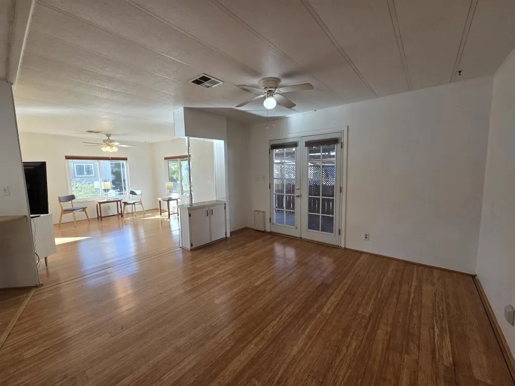 Located in the Royal Palms 55+ community, 264 Wolf, a 1977 Bendix manufactured home with 1248 sq. ft., two bedrooms and two bathrooms, offers a lovely dwelling at exceptional value. The common entry into this lovely home is via double-doors from the large north-facing deck into the spacious den area; to the right is the living room with large west-facing windows (and the formal ‘front’ door providing another interior access point). Adjacent is the dining area with built-in storage which leads around to the roomy kitchen with a full complement of while appliances as well as bountiful storage. A short hallway leads, on the left, to the improved 3/4 guest bathroom with tiled shower and handsome vanity. Across is the laundry room with full-size washer and dryer and ample overhead storage; the leisure door is beyond. The large guest bedroom, with ample closet, is next door and, and at the east end of the home, is the expansive primary bedroom with lovely, improved ensuite full bath. The home has an HVAC system for climate control. Flooring in the home is laminate throughout. Steps from the end of the entry deck lead down to a nice yard area ready for new plantings and quiet enjoyment. Tandem parking is under the carport awning; there is also a large shed at the back of the carport. The furniture and furnishings in the home will transfer upon sale. Space rent for the new owner of 264 Wolf will be $892.00 per month, though that figure must be verified by the buyer. Approval by park management at the Royal Palms is, or course, required for purchase.
