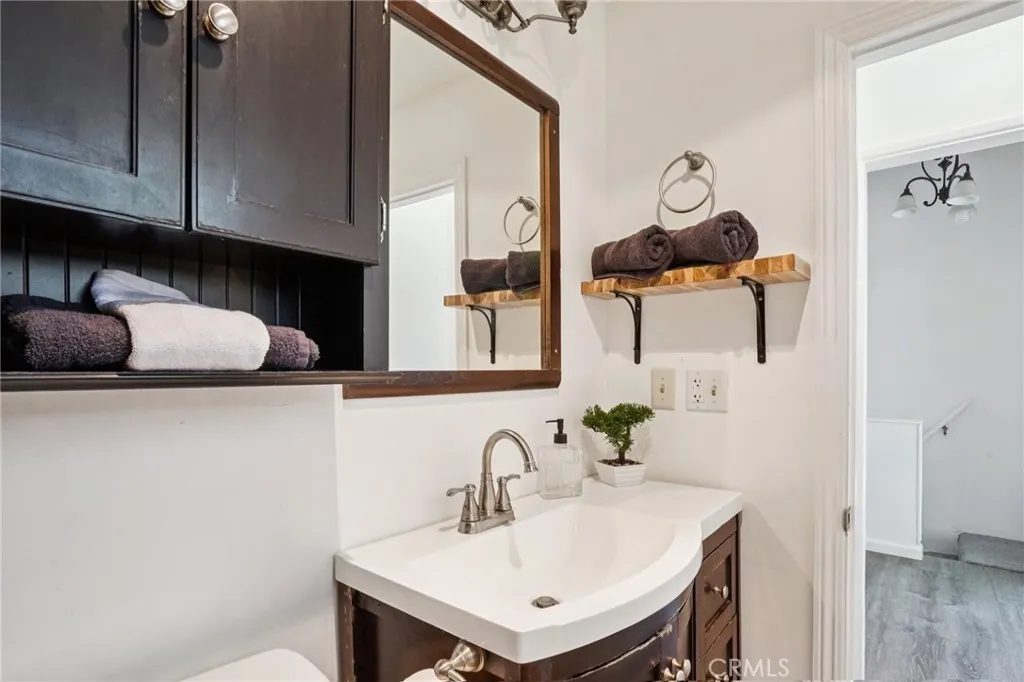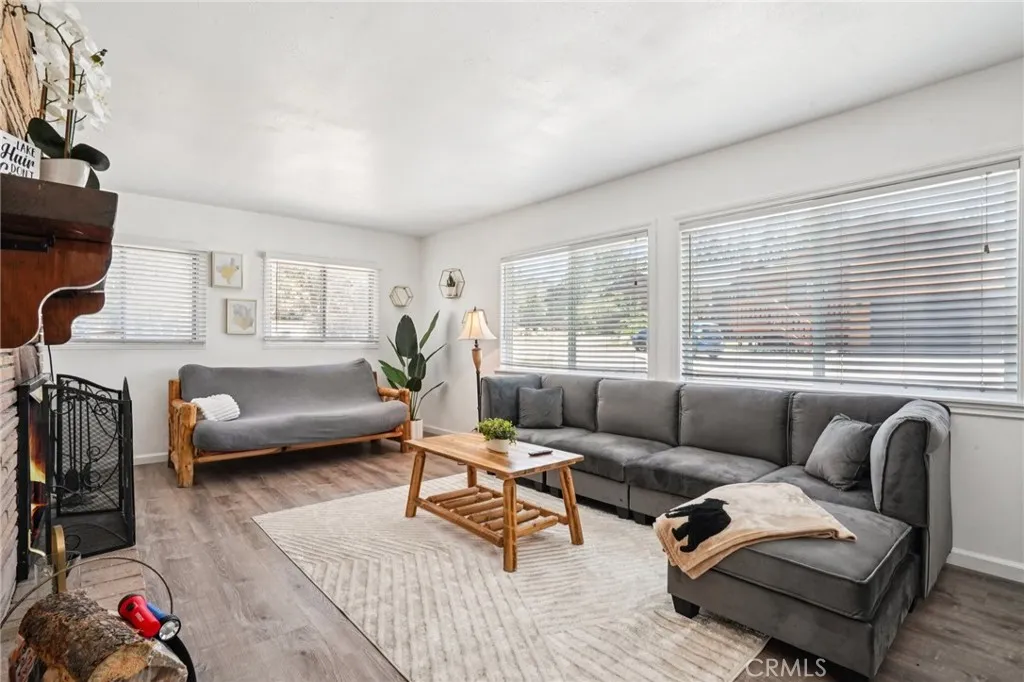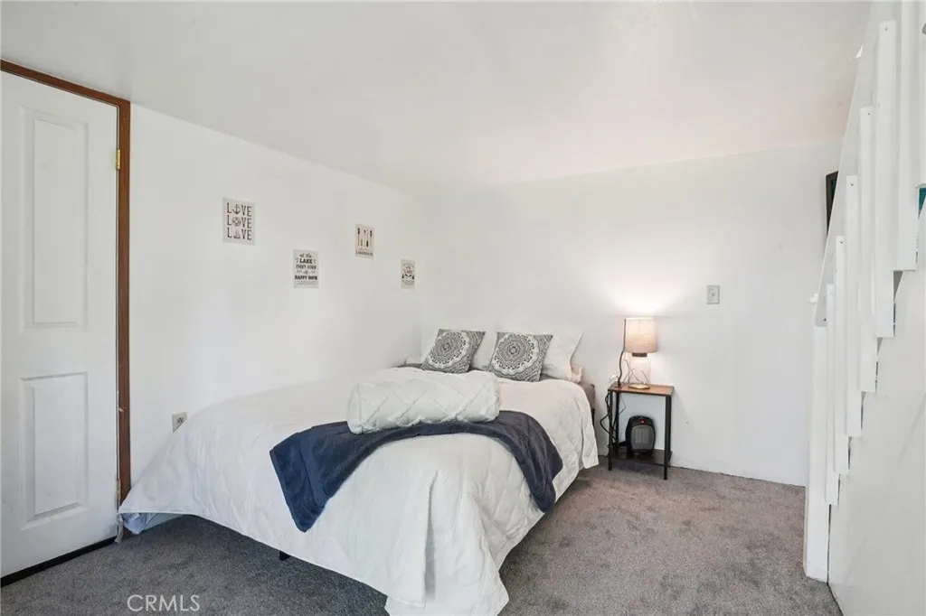 Set in Moonridge with quick access to Bear Mountain, the zoo, golf course, and the revitalized Moonridge commercial corridor, Bearfoot Retreat is a turn-key, move-in-ready 2 bed, 1 bath mountain cabin offering level entry and easy parking for three cars—an advantage in snow season. Inside, the main level features vaulted ceilings, large front picture windows, and an open-concept kitchen/dining area adjacent to the living room with fireplace; a short decorative step-down transitions from the entry/living zone to the kitchen/dining, full bath, and Bedroom 1. Durable LVP flooring runs through the common areas for low-maintenance living and smooth mobility, with carpet in both bedrooms for comfort. The downstairs level functions as Bedroom 2 or a flexible bonus space and opens to a second deck, complementing the primary front deck for outdoor lounging and gear staging. Updates are cosmetic throughout for a fresh, modernized feel while retaining cabin character. Practical details include wall heaters, level approach from street to front door, and straightforward snow-season access. The location places you close to lifts, trails, lake activities, dining, coffee, and groceries, making it a smart base for year-round recreation or an easy lock-and-go second home. Buyers will appreciate the straightforward layout, natural light from the picture windows, and dual-deck setup that extends the living space. Listing includes a 3D tour, video, and floor plan for clear orientation prior to showing; explore the media, then see how the home lives in person.