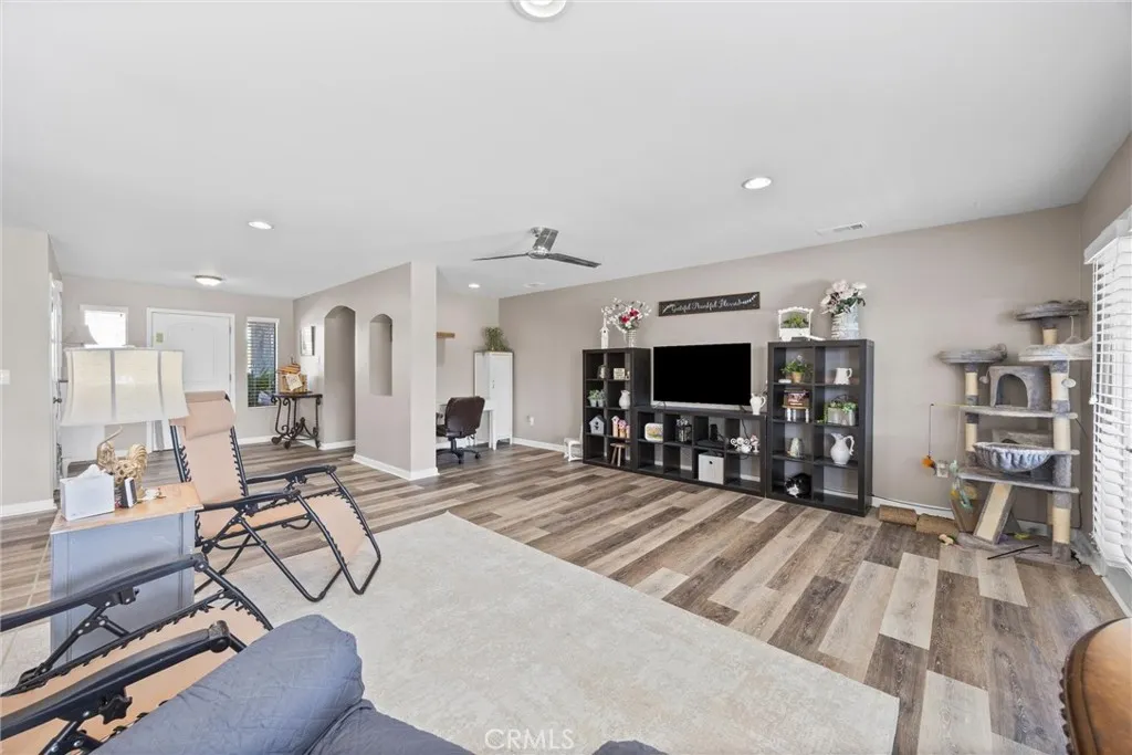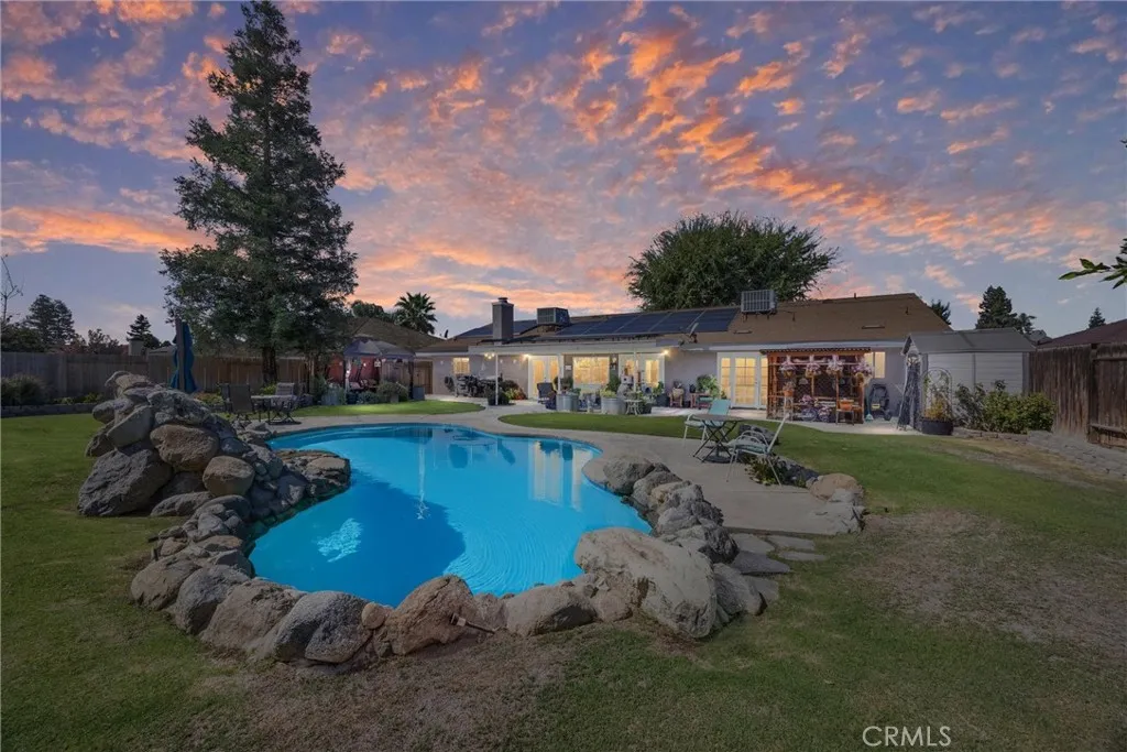 Designed to impress from the moment you step inside, this NW 4-bedroom, 2.5-bath home offers 2,321 sq ft of thoughtfully curated living space paired with a true backyard escape. The open, flowing layout is anchored by a bold brick fireplace with a raised hearth and wood mantle—creating a warm focal point that adds character and charm to the main living area. A built-in office nook just off the living room provides a smart, dedicated work-from-home space that stays connected to the heart of the home. The kitchen is both stylish and functional with granite countertops, double ovens, and an extended island offering ample prep and gathering space. Step outside to a resort-style backyard featuring a sparkling pool and tranquil rock waterfall, perfect for entertaining or everyday relaxation. An oversized primary suite and well-designed floor plan round out this standout home built for comfort, flexibility, and modern living