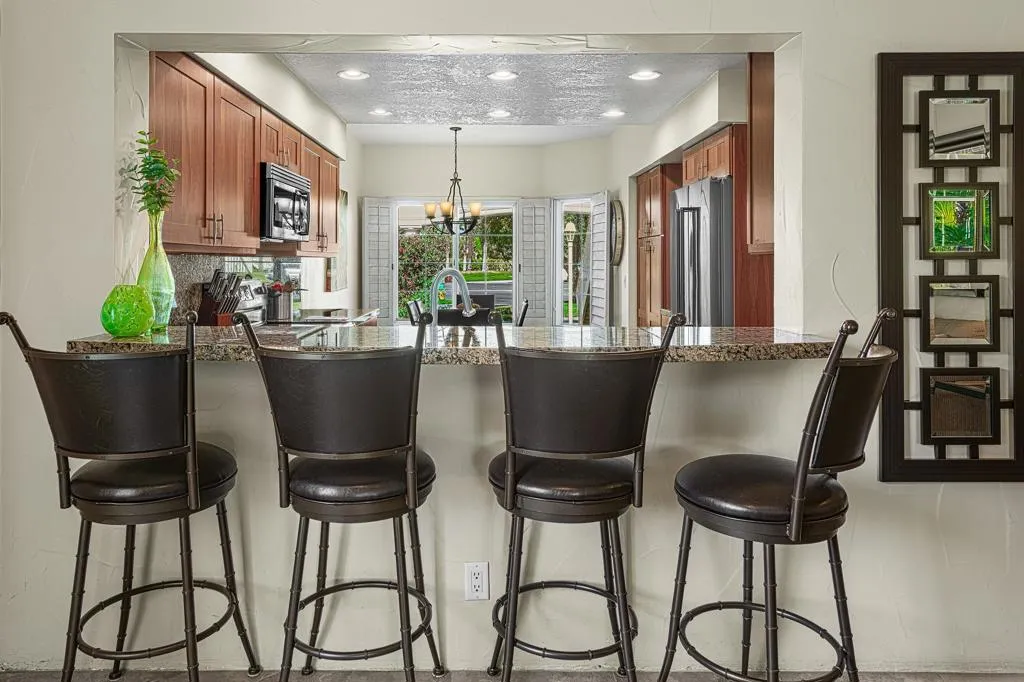 This POOLSIDE, Lower-Level 3BR Villa in guard-gated Desert Falls Country Club is offered Turnkey-Furnished and ready to welcome you, your family, guests and/or vacation renters. Its sunny patio is just steps from what often feels like your own private pool and spa. Tastefully appointed for use as a seasonal or year-round home, or as a desert get-away. The kitchen has been upgraded with a breakfast bar, newer cabinetry, countertops and appliances. Notice how the breakfast nook has been converted into the dining area — allowing a much larger living room space. Retreat to the huge primary suite with its spa-like bathroom, walk-in closet and direct access to the patio. Newer mechanicals include: Hot Water Tank, Toilets, A/C and Furnace. AMENITIES/SERVICES. Ownership includes access to the Fitness Center, Tennis and Pickleball Courts and a wide variety of social activities. Also included are WI-FI and cable, 24/7 guarded gates and security patrols, building, roof, landscape, and street maintenance, and pools and pool maintenance, Golf on the semi-private Ron Fream-designed layout (over 7,000 yards from the tips) is either by pay-as-you-play or by membership. Residents are also eligible for the Desert Willow Golf Resort Resident’s Card. LOCATION. Desert Falls is conveniently located mid-Coachella Valley, close to the freeway, shopping, restaurants, hiking, entertainment and all our desert lifestyle has to offer. INVESTOR BONUS. Desert Falls is one of only a few remaining communities in the desert where SHORT-TERM RENTALS are allowed. Let your villa help pay for itself when you are not enjoying it.