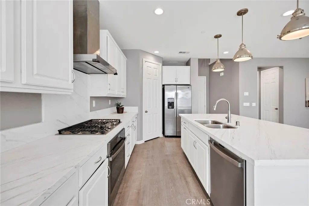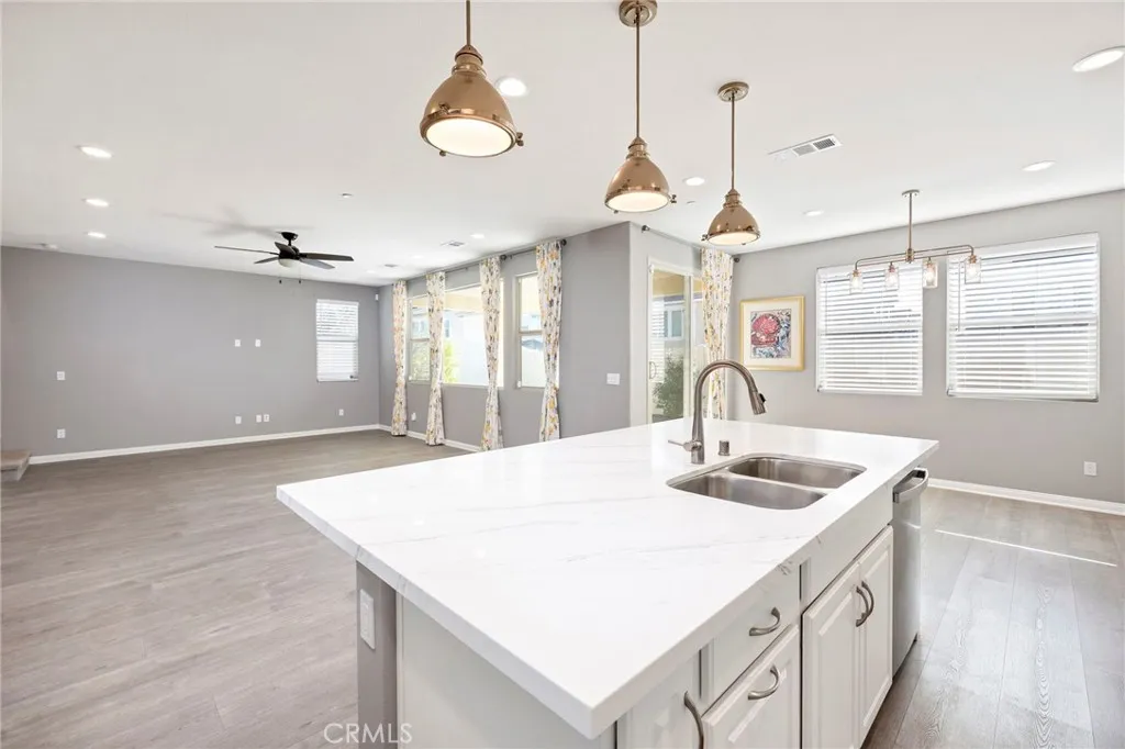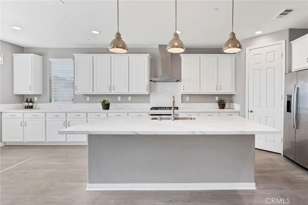 Welcome to this magnificent property located in the highly desirable community of Sommers Bend to explore the true lifestyle near the well-known wineries in Temecula. The entire house features fresh neutral-toned paint perfectly coordinated with all the floorings. The gourmet’s kitchen highlights: Brand-New Quartz Countertops, Modern Style light fixtures, Powerful Range Hood, Profile Stainless Steel Appliances, built-in trash/recycling, self-closing White Cabinets and a Delightful Walk-in pantry. A row of large windows makes the space bright and airy, filled with sunlight. All the bedrooms upstairs are spacious and equipped with ceiling lights or fans. The Loft can easily be converted into the 4th bedroom. The property has energy-efficient details that are essential for modern living: Automatic shut-off Light Switches, Solar Panels(leased), Tankless Water Heater and External Sensor Lights. The beautifully landscaped backyard features Covered California room, Complete with Evergreen Artificial Grass, Flowers and Fruit trees, which exudes tranquility and relaxation. As a resident of Sommer’s Bend, enjoy access to all the amazing amenities: resort-style pools/Spa, clubhouse, playgrounds, BBQ, Sports fields, an expansive fitness center, scenic trails. The community located 10 minutes away from Temecula wineries, conveniently connects all the living needs in Temecula and Murrieta and close to all the great schools and activities.