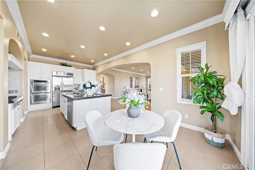 Featuring a bright and open floor plan, the home is designed to maximize indoor-outdoor living. Expansive windows fill the interior with natural light, while capturing serene hillside and city light views. The spacious living and dining areas flow seamlessly into a well-appointed kitchen and family room, creating the perfect setting for both everyday living and entertaining.