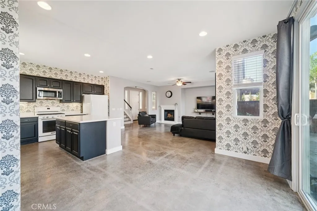 Beautiful curb appeal and an inviting open floorplan welcome you to this lovely home in the desirable Village of Avalon community. Clean landscaping and a well-maintained exterior. The main level features a bright and open living, dining, and kitchen area—perfect for everyday living and entertaining. The living room has a fireplace for a cozy setting. The kitchen offers a center island with bar seating and ample storage. A slider door opens to the backyard, where a spacious patio provides an ideal setting for outdoor dining, lounging, or hosting gatherings. Upstairs, a versatile loft area offers additional living space for a home office, playroom, or media zone. Three well-sized bedrooms include a generous primary suite with a walk-in closet and an en suite bathroom featuring a separate shower and soaking tub. Two additional bedrooms share a full bathroom, completing the upper level.