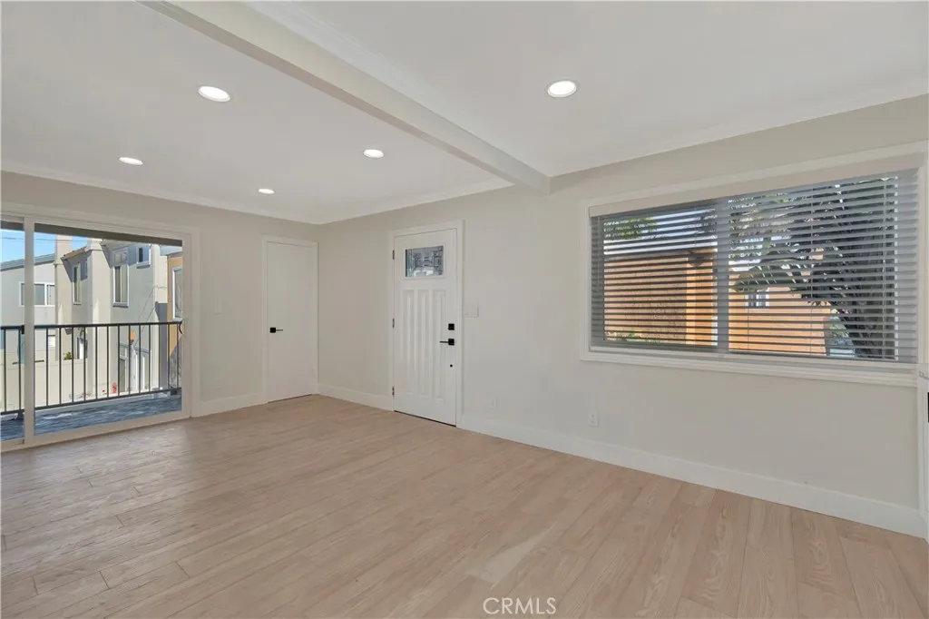 This stunningly remodeled home, located just steps from the ocean in Downtown Huntington Beach, features two bedrooms and two bathrooms and a 2 car garage. The property showcases numerous upgrades, including recessed lighting, luxury hard surface flooring, custom paint, and a new mini-split air conditioning system. The living room is highlighted by new vinyl flooring and a sliding glass door that opens to a charming deck. The gourmet kitchen is adorned with exquisite quartz countertops, new shaker cabinets, stainless steel appliances, and ample storage that seamlessly extends into the dining area. The primary suite boasts dual mirrored closets and a beautifully remodeled en-suite bathroom, complete with new cabinetry, quartz counters, and a walk-in shower. The generously sized secondary bedroom is conveniently located near a remodeled full bathroom. A large linen closet is situated next to the stacked washer and dryer. Additionally, the coveted two-car garage features brand new epoxy flooring and abundant storage shelves. This home is ideally positioned just steps away from the beach, downtown Huntington Beach, Pacific City, the scenic trails at Bolsa Chica Wetlands, as well as shopping, dining, splendid parks, award winning schools and much more!