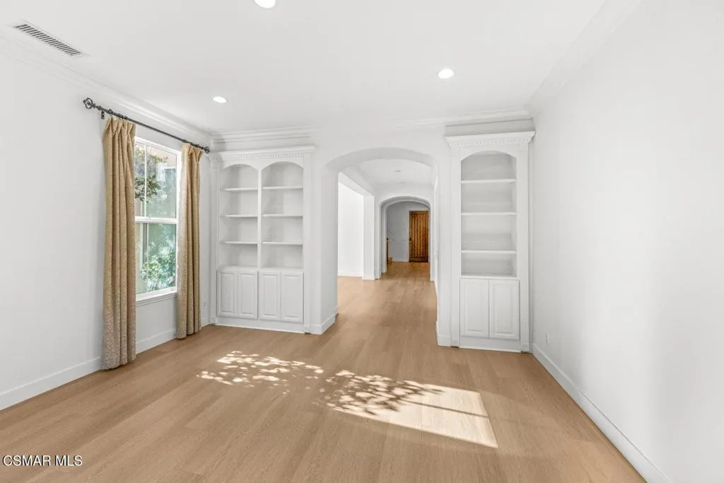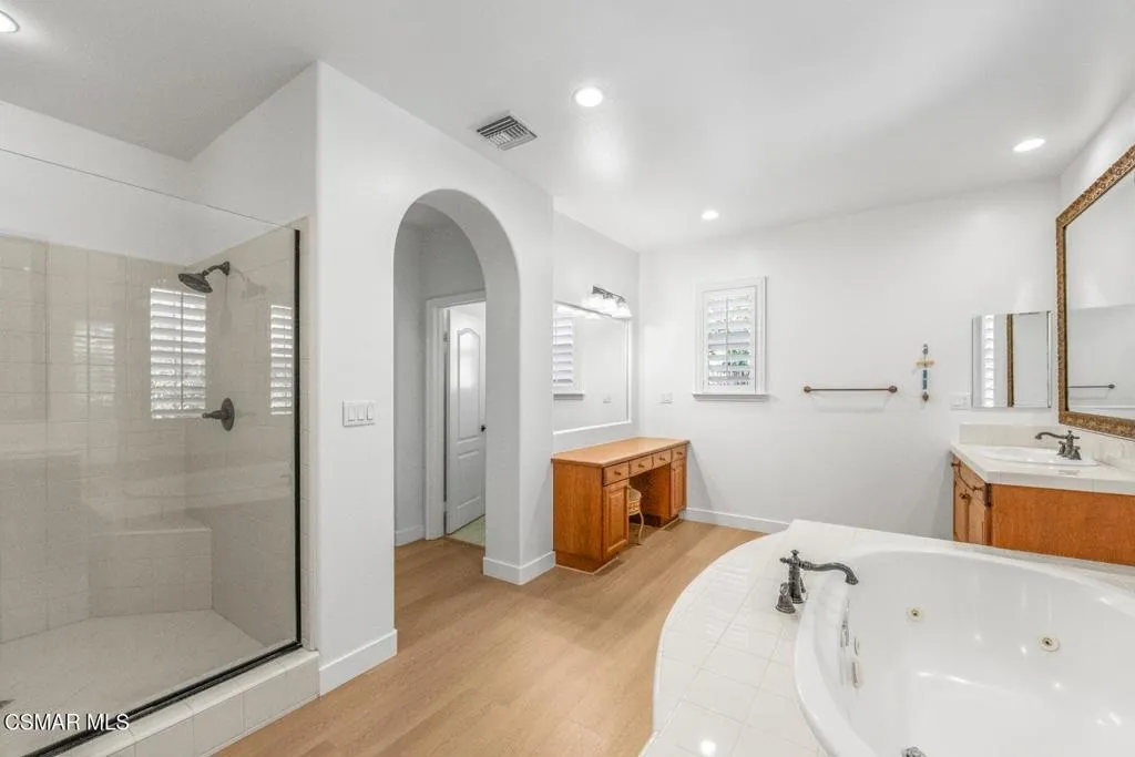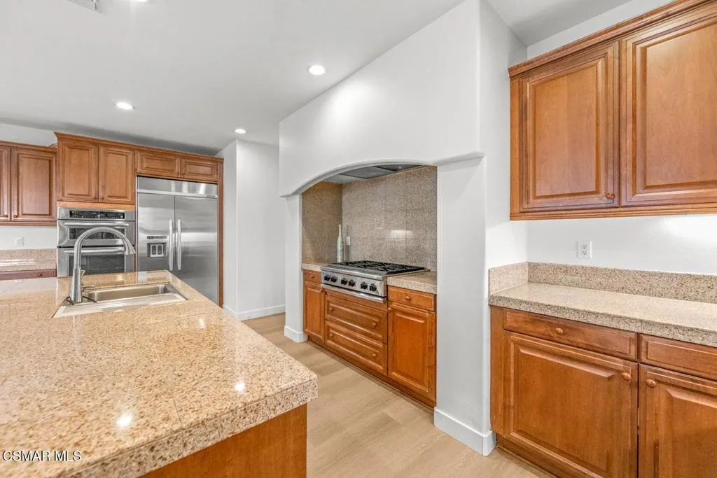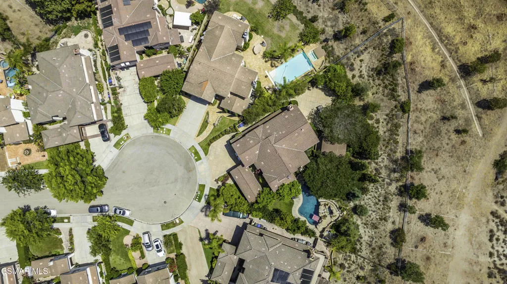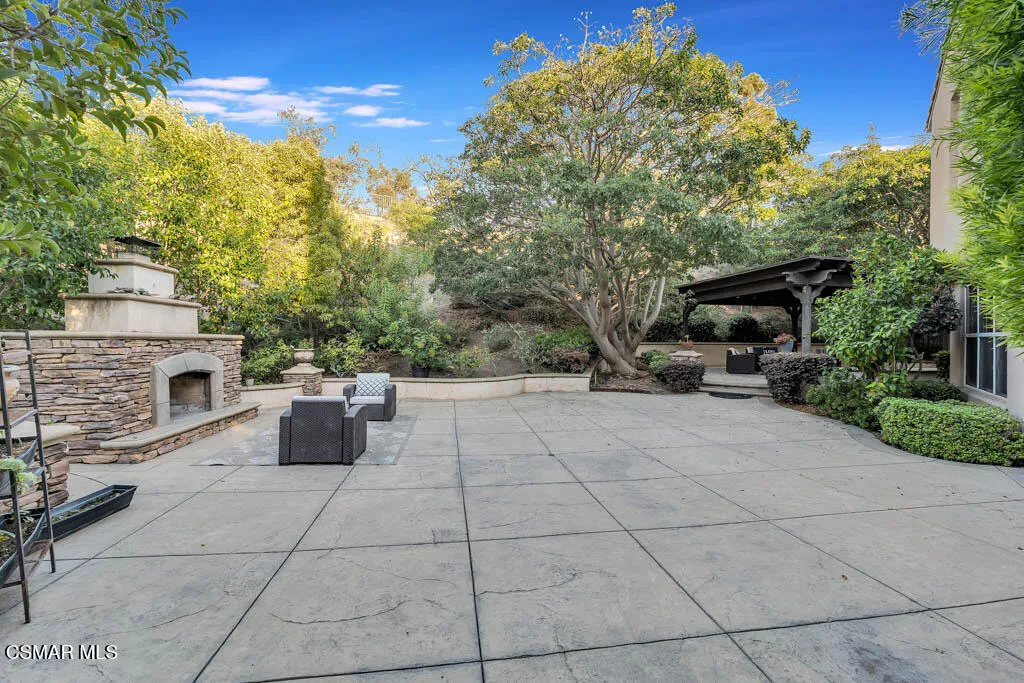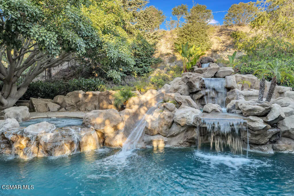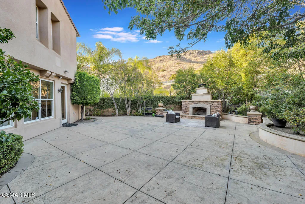 Enjoy Absolute Peace & Serenity in your own private Resort Style Dos Vientos Residence! Over 4,000 sq.ft. at the end of cul de sac on a 20,000+ square foot lot with the most amazing private yard backing open space. Magical Pool w/ cascading waterfalls, spa & WATERSLIDE. Enjoy Entertaining large gatherings with the enormous covered pavilion that fits a spacious dining table plus sitting area; Patio with Outdoor Fireplace and Grassy area. Immaculate 5 bedroom home with recently installed wide plank wood-like flooring throughout. Entertaining is a dream with the formal Living Room & Formal Dining Room adjacent to the Spacious Great Room featuring Gourmet Kitchen with Large Center Island, Granite Counters, Stainless Steel appliances, large eating area open to Huge Lounging Area with Fireplace/Entertainment Center. Primary Suite w/ Library Retreat, Fireplace, Office Nook, Jetted Tub, Separate Vanities, Organized Walk-In Closet. Crown Molding, Plantation Shutters, and so much more! One Bedroom & Bath Downstairs. Downstairs Bedroom does not have a closet. Enjoy epoxy floors in large garage. Separate hidden third car garage for additional storage. Fall in Love Here! This is a one of a kind Dos Vientos home. Do not miss this opportunity! Enjoy fabulous parks, tennis, playgrounds, hiking trails and the best schools all just steps away.