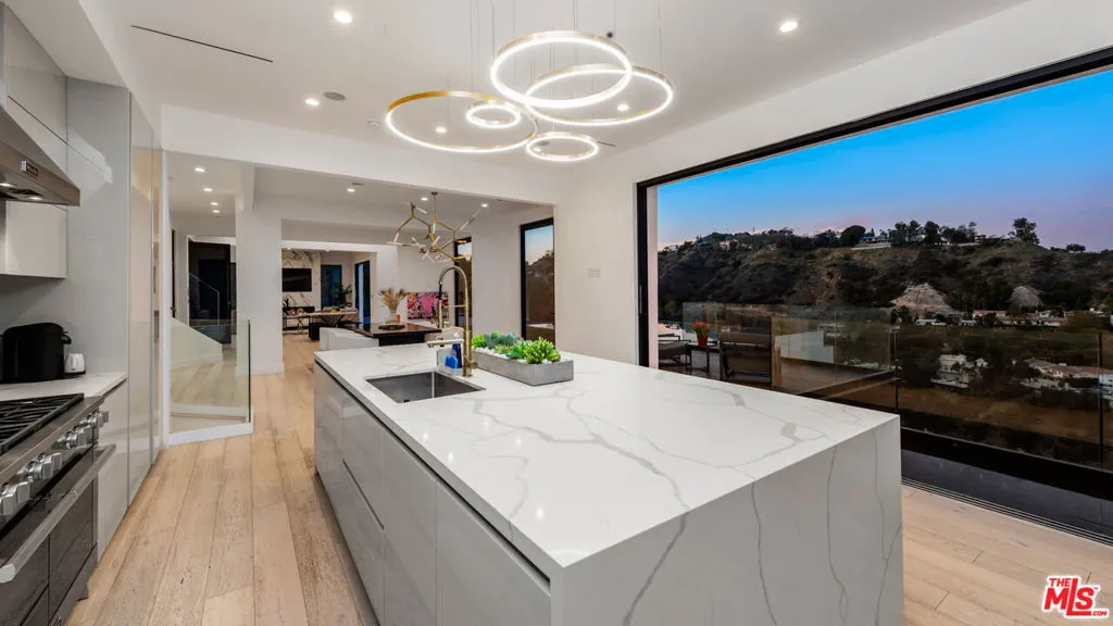 An architectural modern masterpiece of glass and light, this fully furnished estate is designed for elevated indooroutdoor living. Floor-to-ceiling Fleetwood glass frames sweeping canyon views from every room, blurring the line between interior sophistication and the natural landscape beyond. Tucked away on a quiet street just moments from the Sunset Strip, the home offers a rare balance of privacy, tranquility, and immediate access to world-class entertainment.The 4-bedroom, 6-bath residence spans approximately 4,600 square feet on an expansive 20,565-square-foot lot and is appointed with curated contemporary designer furnishings. A bright, open floor plan with hardwood floors flows effortlessly throughout, opening to multiple outdoor living spaces ideal for both intimate evenings and large-scale entertaining.A zero-edge infinity pool and spa appear to float into the canyon, creating a dramatic focal point enhanced by custom surround sound throughout the home. The master chef’s kitchen features a massive marble island, top-of-the-line appliances, and custom Italian cabinetry, anchoring the main living space with both style and function.Upstairs, four bedrooms and six baths offer comfort and privacy, while the lower level is dedicated to leisure, featuring a state-of-the-art movie theater and a spa-like sauna. The primary suite is a private retreat, complete with a romantic fireplace, private deck, spa-inspired bath, and an expansive dual walk-in closet.Every detail has been thoughtfully updated to showcase modern elegance and cinematic canyon vistas. Just minutes from renowned restaurants, bars, markets, and the Sunset Strip, this estate delivers unparalleled convenience alongside complete privacy.