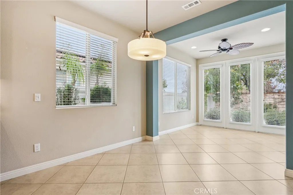Welcome to resort-style living in the highly sought-after 55+ Solera Diamond Valley Community by Del Webb! This meticulously upgraded 2-bedroom, 2-bathroom home with a den/office offers 1,734 square feet of stylish and functional living space designed for comfort and elegance. From the moment you arrive, the exceptional curb appeal is evident with top-of-the-line drought-tolerant landscaping and a river rock bed creating a stunning, low-maintenance front yard. The beauty continues in the backyard with equally impressive water-wise landscaping—your private outdoor oasis. Inside, you’ll be impressed by the tile flooring laid diagonally at a 45-degree angle, elevating the home’s custom feel. The open-concept kitchen is a true showstopper, featuring an upgraded stainless steel appliance package, a built-in range, a walk-in pantry, designer tile backsplash, a huge center island, and sleek upgraded fixtures. Whether you’re hosting or enjoying a quiet night in, the layout flows beautifully into the living and dining areas. A gorgeous sunroom adds extra living space and includes a cozy fireplace, perfect for year-round relaxation. The spacious primary suite serves as a serene retreat, complete with a generous walk-in closet, a luxurious bath, dual sinks, and a step-in shower. The guest bedroom and second full bath are perfect for visitors or multi-purpose use. Need a home office or hobby room? The dedicated den/office offers flexible space to meet your needs. A well-appointed laundry room with extra storage keeps everything organized, and the garage includes built-in cabinets for even more storage solutions.