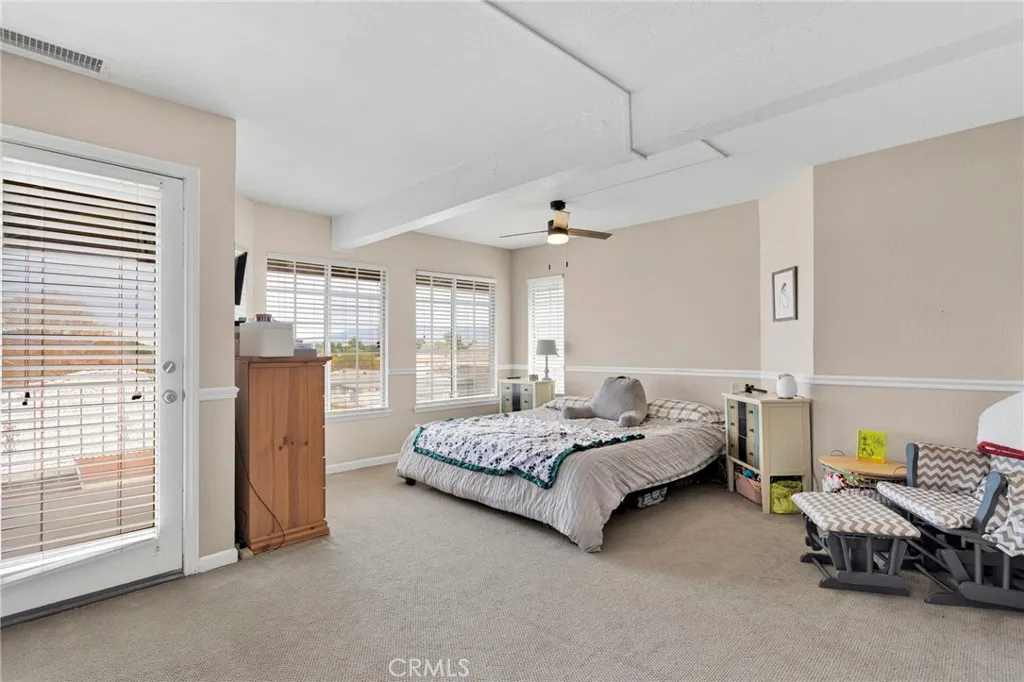All bedrooms are upstairs, including a spacious primary suite with a balcony. The separate indoor laundry room provides abundant cabinet storage for added organization. Step outside to enjoy a covered patio, perfect for relaxing or hosting gatherings. Additional highlights include extra parking and a double side gate. Enjoy the lifestyle and amenities that Spring Valley Lake has to offer in a home designed for both comfort and convenience.