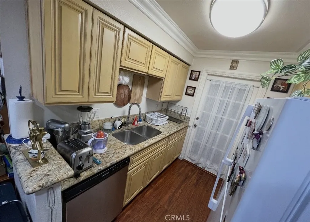 Well maintained end unit Condo located near downtown Covina with convenient access to the 210 and 10 freeways. This private unit offers added seclusion and a welcoming, cozy living room featuring a charming fireplace; perfect for relaxing evenings. The updated kitchen showcases granite countertops and opens to a private patio, ideal for morning coffee or outdoor dining. Upstairs, you’ll find spacious bedrooms, including a generous primary bedroom with faulted ceilings and his and her closets. The upper level features laminate flooring and elegant crown crown molding through, adding warmth and style. The community offers resort-style amenities, including a clubhouse, pool and jacuzzi, making this home perfect for comfortable living and entertaining