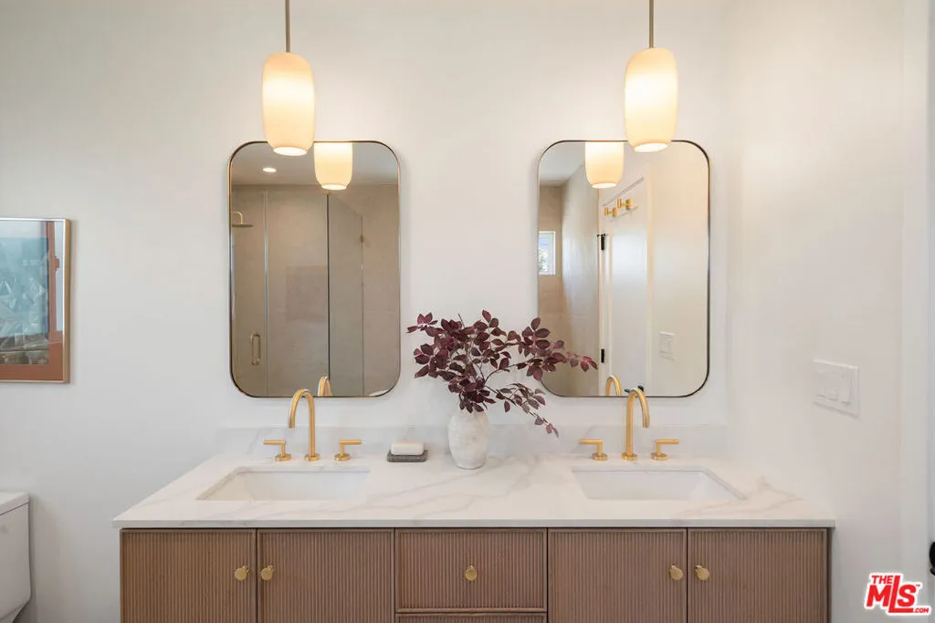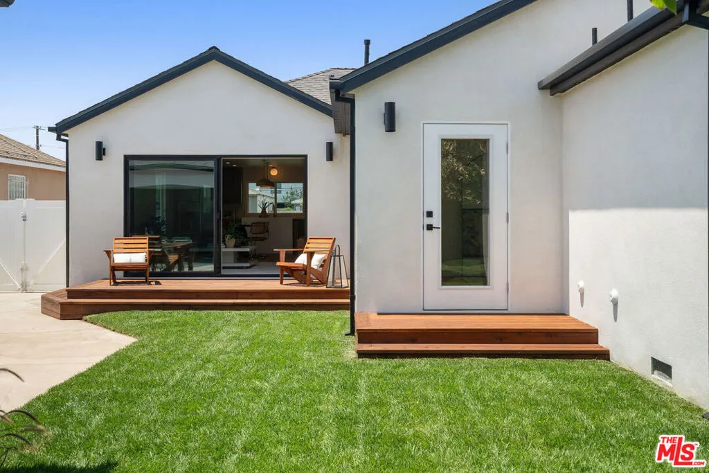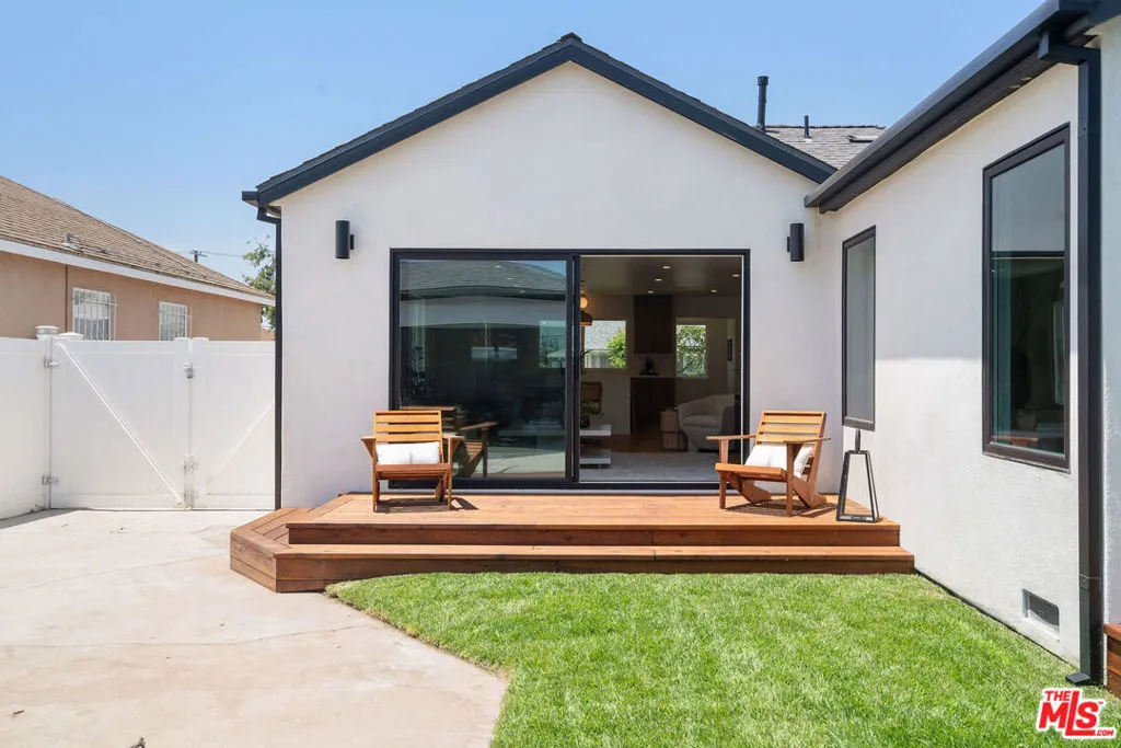 Chic and fully renovated 3 bed 2 bath home in Mid City. Located on a quiet street in one of LA’s hottest neighborhoods, this 1,694 square foot home blends modern design with comfort and style. Step through the new redwood front deck and past the new stucco front wall, a perfect spot for sunny morning coffee or laid-back afternoons. Inside, the open floor plan connects the spacious dining and living rooms to the all-new kitchen.The kitchen is a standout, featuring a large island with waterfall quartz countertops, stool seating, a Sharp drawer microwave, ample cabinet storage, and new Samsung stainless steel appliances including a range, refrigerator, and dishwasher. The adjacent dining area creates a comfortable zone for entertaining or daily meals. Sliding doors open to a private, fully fenced backyard with multiple outdoor dining and lounge areas.Every bedroom is generously sized and includes a walk-in closet, offering both comfort and function. The expanded primary suite is a true retreat with a spacious en suite bathroom featuring custom dual vanities, a walk-in shower, and a freestanding tub surrounded by spa style tile. A generous walk-in closet adds both function and luxury. A glass door leads from the suite to the backyard, stepping onto a redwood landing that opens to a beautifully landscaped outdoor space with a mature persimmon tree.The guest bathroom features stylish tile work and includes a tub with shower, blending beauty with practicality.The laundry room offers cabinets above and enough space for a side-by-side washer and dryer. In the hallway, custom linen cabinets provide additional storage.This home was thoughtfully updated with quality and comfort in mind. Features include a new roof, HVAC system, plumbing, electrical, tank less water heater, hardwood floors throughout, recessed lighting, new stucco, fresh paint, and professional landscaping. The finished 400 square foot garage with sliding doors provides flexible space that can be used as an office, gym, or bonus room.The 6,000 square foot lot offers excellent indoor-outdoor flow and plenty of space for relaxing or entertaining. Built-in speakers in the primary suite, kitchen, living room, and backyard enhance the home’s entertainment capabilities, perfect for hosting gatherings or enjoying music throughout the house. This home is ideally situated just minutes from Whole Foods, Target, and the thriving West Adams food and coffee scene, with popular spots like Highly Likely, Damn, I Miss Paris, and more close by. Outdoor lovers will appreciate quick access to Kenneth Hahn State Recreation Area, nearby hiking trails, and Culver City’s Platform. The Metro Expo Line makes getting to Downtown LA, Santa Monica, and other parts of the city a breeze. You’ll also find local favorites like Johnny’s Pastrami, Vicky’s All Day, Cento, Alta, Fleur et Sel, and Chulita just a short drive away. This is a rare opportunity to own a stylish, move-in ready home in one of Los Angeles’s fastest growing and most desirable neighborhoods. The home has passed final inspection, and the Certificate of Occupancy is in place. Welcome home.