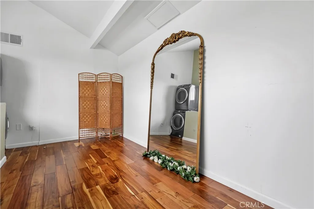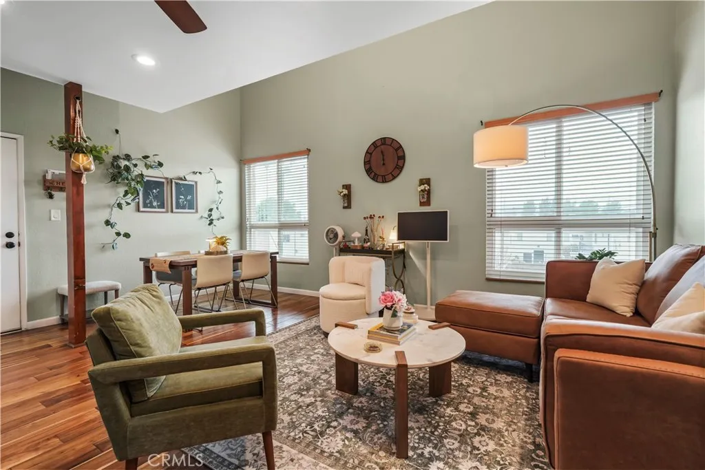 Gorgeous upgraded 2 + 2 condo plus LOFT located in a gated community. This light-filled second-floor end unit features a versatile loft—ideal for a creative studio, home office, or flex space. The open floor plan showcases brand new windows, recessed lighting, and beautiful hardwood floors throughout. High vaulted ceilings enhance the sense of space and openness throughout. The kitchen is equipped with granite countertops and modern appliances, perfect for everyday living and entertaining. Primary bedroom features 2 closets, en-suite bathroom and a private balcony. Additional highlights include in-unit washer and dryer, two covered tandem parking spaces behind a security gate, and a well-maintained complex with a pool. Community consists of just 28 units. Low HOA dues. Truly a one-of-a-kind opportunity!