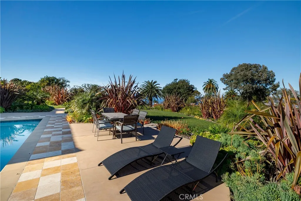 The outdoor space is designed for relaxation and entertaining, featuring a resort-style pool and spa positioned to enjoy the views, along with fig and citrus trees and generous garden areas. This exceptional home blends privacy, comfort, and elevated coastal living in one of Southern California’s premier communities.