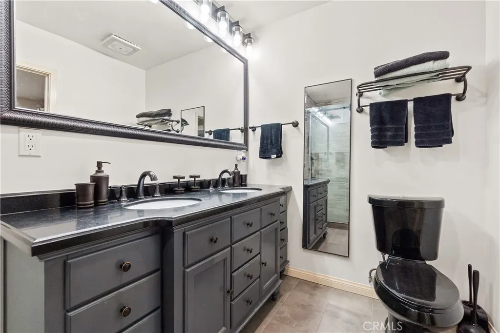 The lower level has been extensively renovated with a newly expanded foundation, a full second primary suite, French doors (indoor & outdoor), recessed lighting, a walk-in closet with a pocket door, a fully upgraded bathroom, new windows, and vinyl floors throughout. This space offers direct access to the backyard and patio, perfect for relaxing or entertaining.