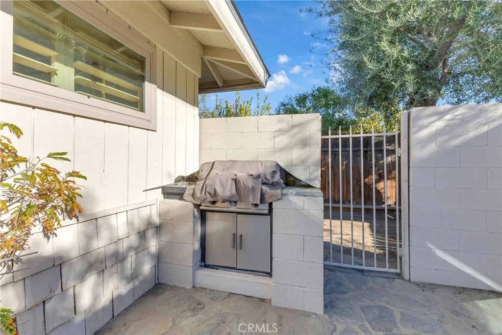 Enjoy a private backyard with mountain views, featuring a stone-decked pool, built-in grill, wood-burning outdoor stove, and mature citrus trees—perfect for entertaining or unwinding. Pet-friendly design includes a gated front entry and side yard dog run for added safety, peace of mind, and convenience.