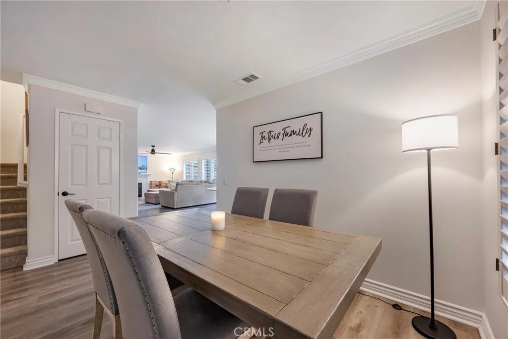 Welcome to Orange County at its finest, in a fantastic and warm community in Sunny Rancho Santa Margarita close to FANTASTIC School Districts with quality K-12 educational offerings. The property has been repainted completely on the exterior, well cared for, and ready for it’s next homeowner. Inside, you’ll notice the details: crown molding, custom shutters, and an open layout that actually works for real living. The kitchen flows straight into the family room, finished with Quartz counters and centered around a fireplace with a tiled mantle. Newly remodeled downstairs half bath. Tons of natural light, great energy, and perfect for everyday living or hosting without overthinking it. LVP floors that are easy to clean and lovely to look at.