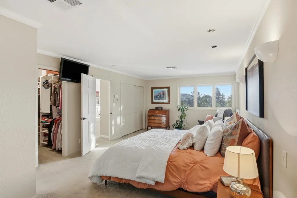 Set on a tranquil cul-de-sac in Moraga’s sought-after Campolindo neighborhood, this custom-built home offers a rare combination of space, privacy, and thoughtful design on an expansive 1.29± acre lot. Built in 1989, the residence spans 2,490± sf across two levels with four bedrooms and three full bathrooms, including a bedroom and bath on the main level, ideal for guests, extended family, or a home office. Light-filled living and dining rooms create comfortable gathering spaces, while the eat-in kitchen opens to the family room with access to the backyard for easy everyday living. Upstairs, the spacious primary suite includes a sitting area and a well-appointed bath, complemented by two additional generously sized bedrooms and an updated hall bathroom. The home features radiant heated floors, natural stone surfaces, central AC, crown moldings, dual-pane windows, and owned solar for energy efficiency. Outdoors, the expansive yard offers privacy and room to relax or play. A detached shed with electricity provides flexible bonus space. An oversized garage adds valuable storage and functionality. Enjoy access to the Campolindo Cabana Club and community pool. Conveniently located near top rated Moraga schools, downtown Lafayette, BART, and trails. Not to be missed!