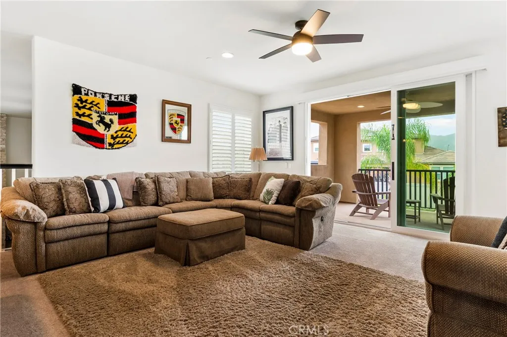 Seamless Indoor-Outdoor Living: Retractable glass sliders in the family room, living room and upstairs bonus room erase the boundaries between the interior and three expansive, covered patios that feature ceiling fans and a large outdoor fireplace. The backyard is a resort-style sanctuary featuring a lagoon-style pool and spa with a luxurious pebble-tech and luminescent abalone shell surface, a cascading waterfall, a built-in water slide, and a fire-topped focal point. Whether hosting at the outdoor bar and built-in BBQ or relaxing by the spa’s fire pit, the lush tropical foliage and designer travertine hardscape provide a rich, exotic and tranquil setting.