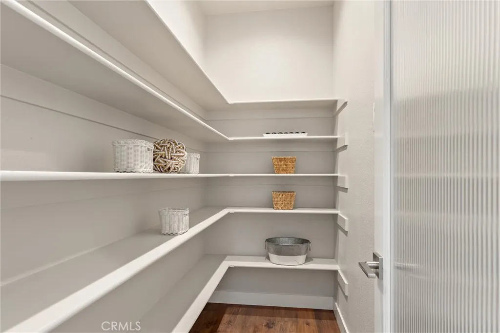 Inside, the split-bedroom floorplan offers privacy and flow, enhanced by real wood flooring, ceiling fans, and stylish fixtures throughout. The gourmet kitchen is a centerpiece, featuring Café by GE appliances including a refrigerator with hot & cold-water dispenser, 2-drawer dishwasher, double oven, and a walk-in pantry for ample storage. A custom media cabinet with fiber service ensures today’s tech needs are met.