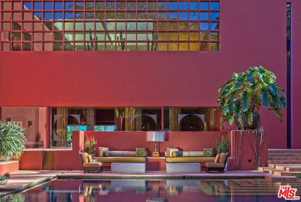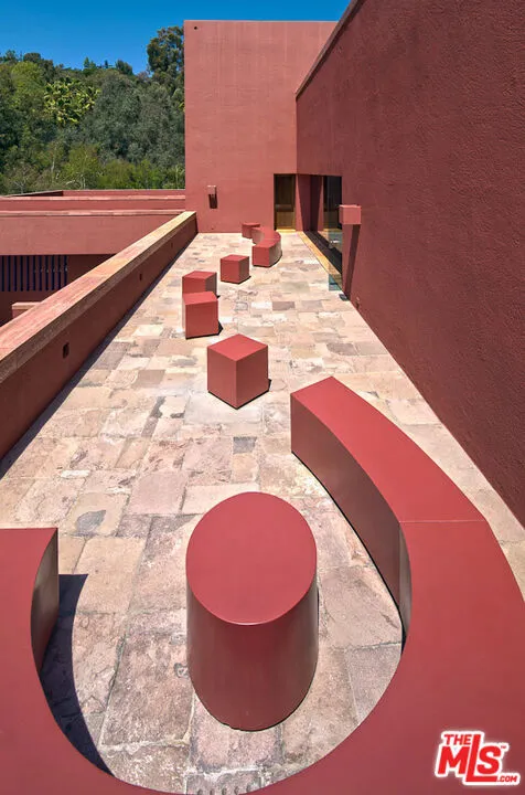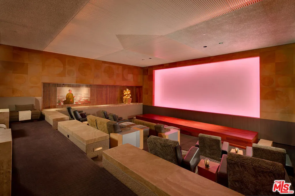 Nestled on 4.5+ acres of lush gardens in the guard-gated enclave of Brentwood Circle, this architectural masterpiece by Ricardo Legorreta offers true paradise with seamless indoor-outdoor living throughout. Private compound showcasing a large motor court, reflection pool with travertine columns and stunning atrium entrance. Multiple living rooms with high-ceilings, open formal dining room and gourmet kitchen with top-of-the-line appliances. Ideal for entertaining with large flat lawns, pool/spa, endless decks and outdoor heated dining. Dual primary suites with den, walk-in closets & marble bathrooms and 3 additional en suite bedrooms. Amenities include a library, office, fitness center, wet/dry sauna and one-of-a-kind movie theater.