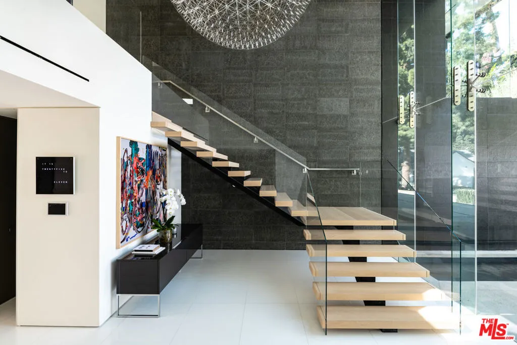 Modern Gated Estate in Beverly Hills! Set behind private gates and lush hedging in the coveted 90210, 1231 Lago Vista Drive is an extraordinary expression of modern luxury. Spanning 12,800 square feet across two parcels totaling more than an acre, this architectural estate blends sleek design with impeccable craftsmanship at every turn. The 7-bedroom, 11-bath residence is fully operated by a personalized Crestron smart home system and designed for seamless indoor-outdoor living, with expansive walls of disappearing glass on both levels. Standout features include dual floating staircases, 33 floor-to-ceiling Rimadesio Italian glass magnetic doors, a custom elevator with bank-vault doors, a dramatic six-foot Moooi chandelier, hand-knotted custom carpeting, Nano Glass finishes, and durable stone composite slabs throughout the main level and baths. The chef’s kitchen is outfitted with top-tier appliances and anchors a home designed for both grand entertaining and everyday comfort. Additional amenities include a 600-bottle wine cellar, private movie theater, gym, and an office overlooking the manicured grounds. Outdoors, the estate unfolds into a true resort-style retreat with a sweeping lawn, stunning pool with Baja shelf, spa, multiple water and fire features, an outdoor kitchen, dining area, and built-in ceiling heaters. With no detail overlooked, this exceptional Beverly Hills estate offers a rare opportunity to experience refined living at the highest level.