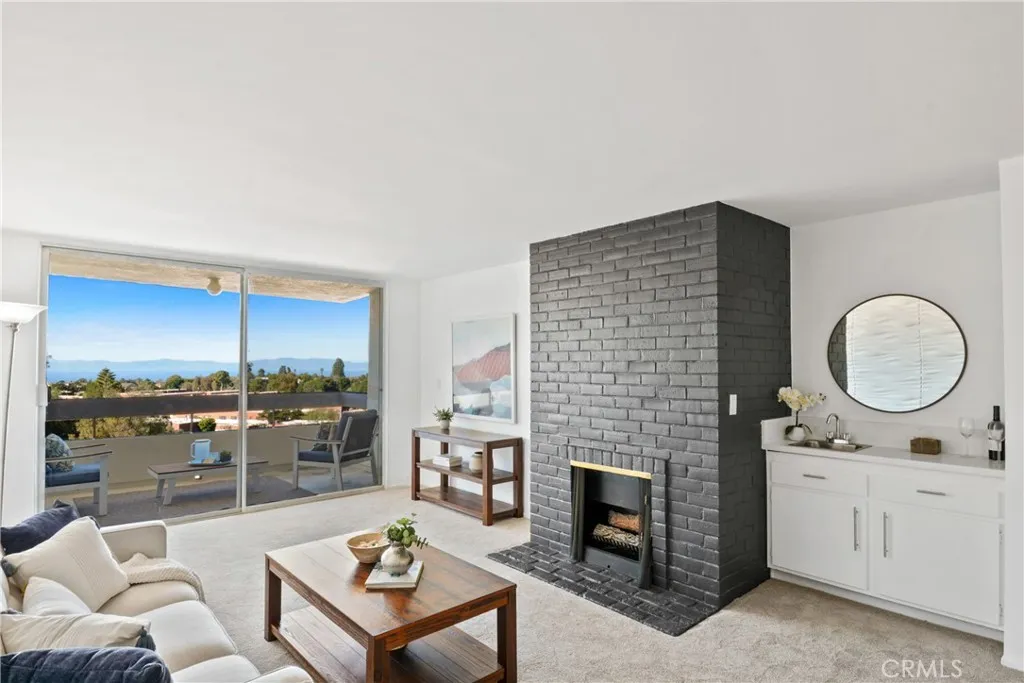 Thought you couldn’t afford an ocean view? Well NOW YOU CAN! This newly updated PENTHOUSE condo can be yours! This is the real deal! Views from EVERY window! Ocean – Queen’s Necklace and more! As you enter the home, a clean white color palette makes the space even brighter than it already is. The kitchen has been updated with new quartz countertops, new cabinet hardware and brand-new stainless appliances including the stove, microwave, dishwasher and a side-by-side refrigerator. It will feel like you’re dining al fresco as you sit in the adjacent dining room and gaze at the ocean. Relax in the spacious living room which is anchored by a brick fireplace and has custom wall tile mimicking the ocean waves! Everywhere you look, the ocean is there! Enjoy the balmy evenings on your private patio – on a clear day you can all the way to Malibu! There are 2 VERY GENEROUSLY sized bedrooms. The primary bedroom will easily accommodate your king-sized furniture which can be situated to see the view when you lift your head from pillow in the morning. There is an en-suite ¾ bath that has just been updated with new quartz counters, mirror, re-glazed stall shower and more. There are two wall closets to accommodate your wardrobe. The second bedroom is also spacious and has a walk-in closet and YES- IT ALSO HAS A VIEW! There is new coastal designed LVP flooring in the kitchen, entry, dining room and bathrooms, and new neutral wall to wall carpet in the living area and bedrooms. There is lots of extra storage as well. A common laundry room is down the hall and only shared with those on your floor. Parking isn’t a problem with two tandem parking spaces in the secured garage. Situated on a private drive off of Highridge Road, this well-maintained complex offers amenities such as gated parking, elevators, swimming pool, a community room and even a small gym. As if this is not enough, the home is close to shopping, major thoroughfares, and TOP-RATED PALOS VERDES SCHOOLS. This is one you won’t want to miss!