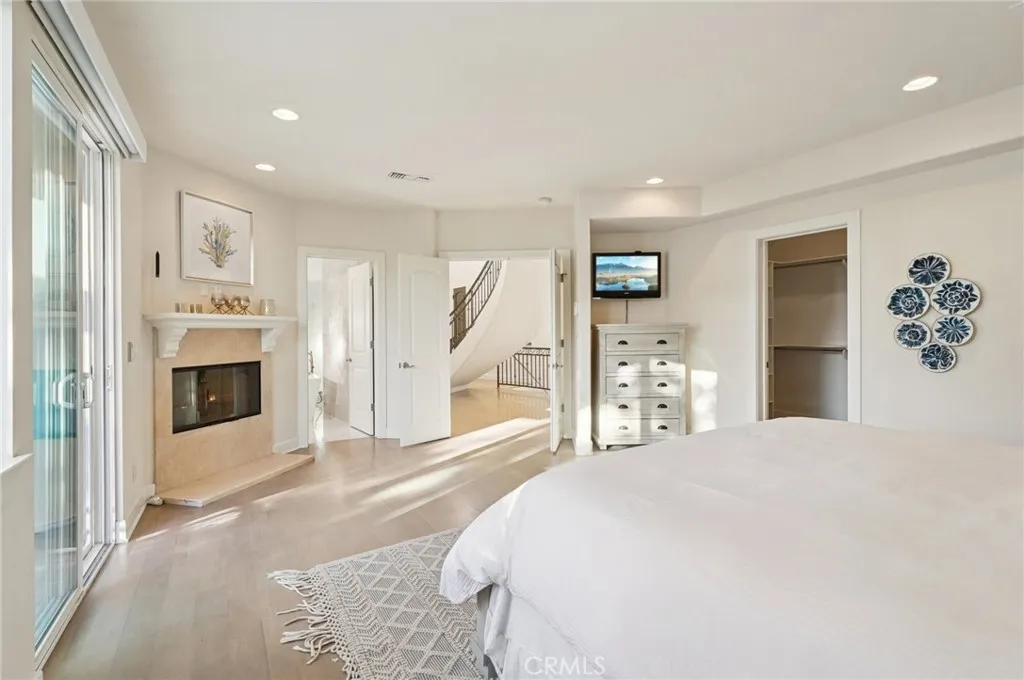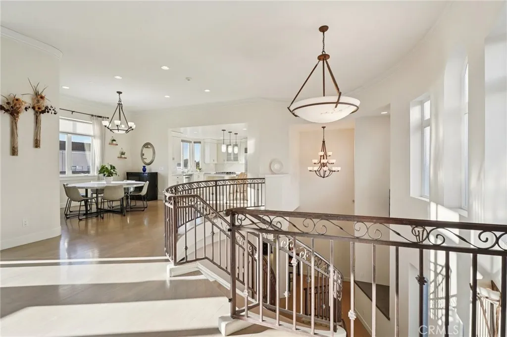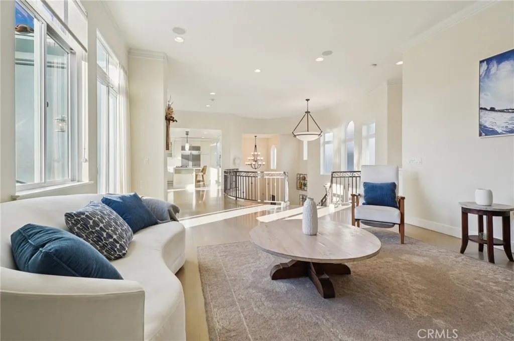 As you enter the foyer with the high ceilings and the custom curved floating staircase, you recognize the unique character and design of the home and how its layout is different from other Hermosa Beach townhomes. An abundance of natural light and hardwood flooring throughout the home, create a warm, cohesive feel, from the moment you enter.