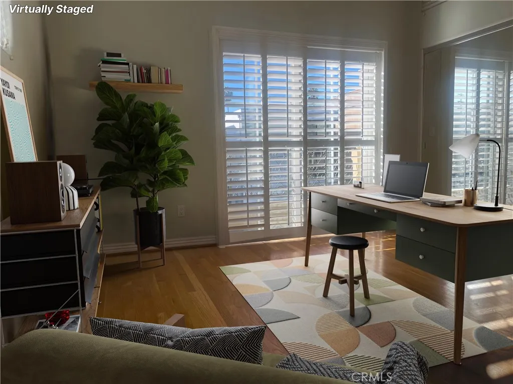 Nestled in the heart of Toluca Lake, this Mediterranean-style corner townhome offers the perfect blend of luxury and convenience. Close to premier dining and shopping with effortless freeway access, this tri-level, front-facing residence is bathed in natural light. Enjoy the views from your expansive private rooftop patio or two balconies. Inside, you’ll find elegant oak hardwood floors and windows that create a bright, airy ambiance throughout. Main Level features an open-concept living and dining area, high ceilings, a cozy fireplace, and sliding patio doors leading to a large balcony. It includes a modern kitchen with granite countertops, stainless steel appliances along with a guest powder room. Second level contains both bedrooms. The master suite features a large walk-in closet, and an ensuite full bathroom. The second bedroom/office also includes a private balcony and a separate full bathroom. A utility storage closet is located in the hallway. The third Level boasts a large, private rooftop patio with mountain and valley views. You’ll also find an in-unit washer and dryer, a water heater and HVAC central air and heating. Two assigned tandem parking spaces are available in a subterranean gated garage.