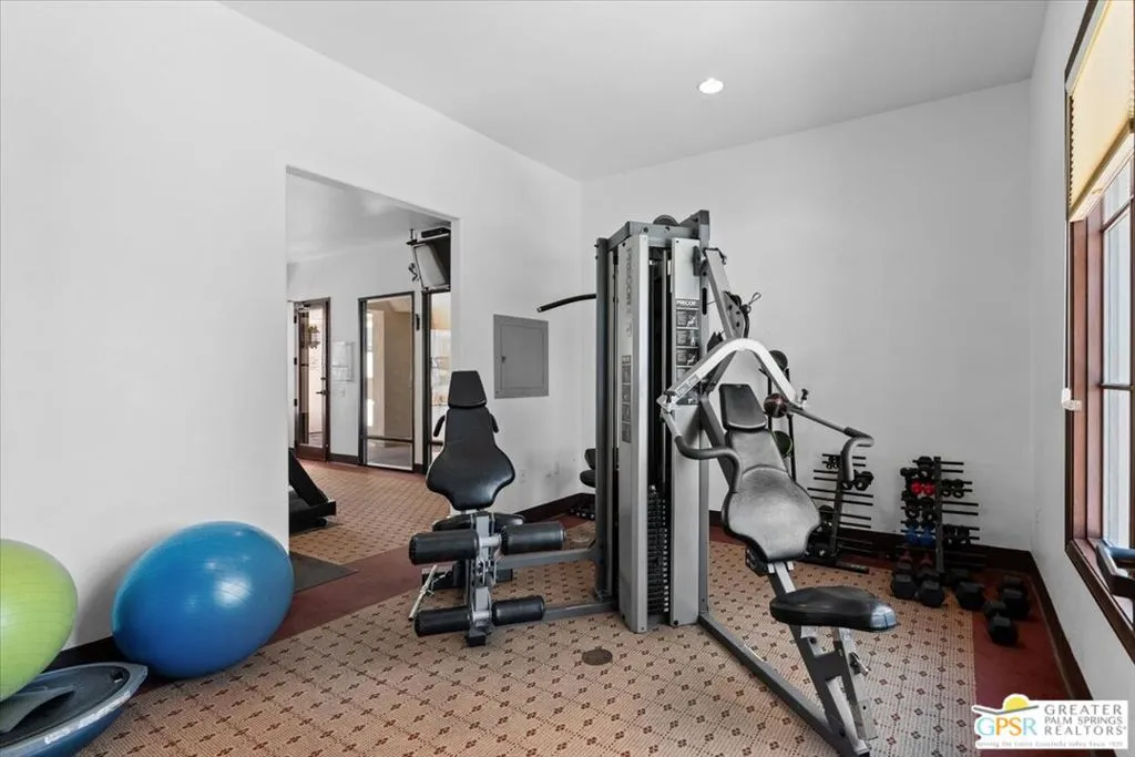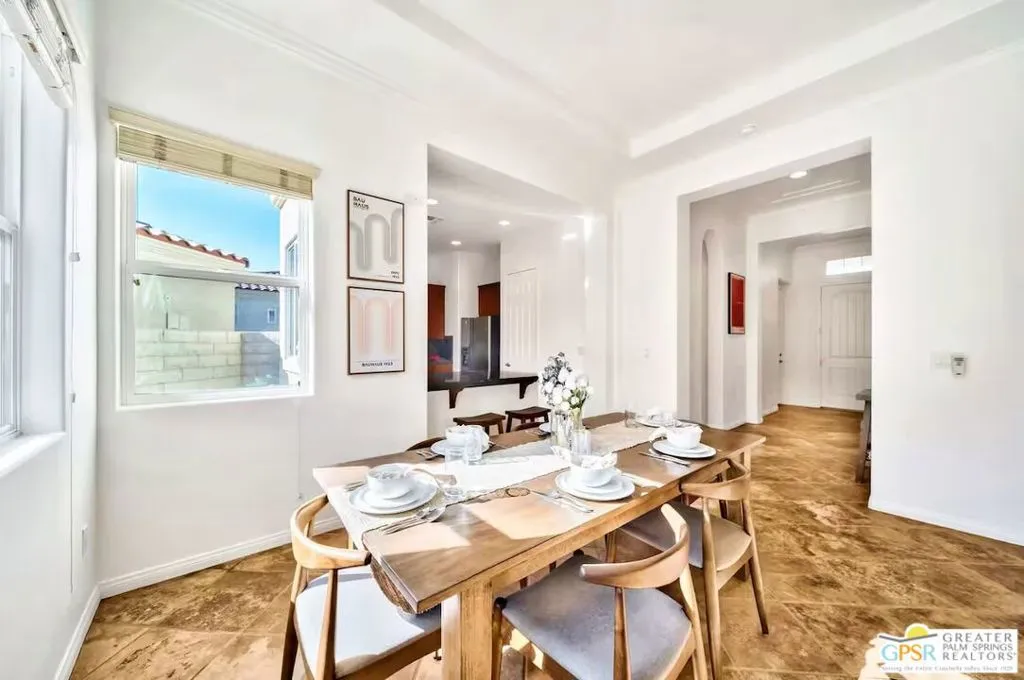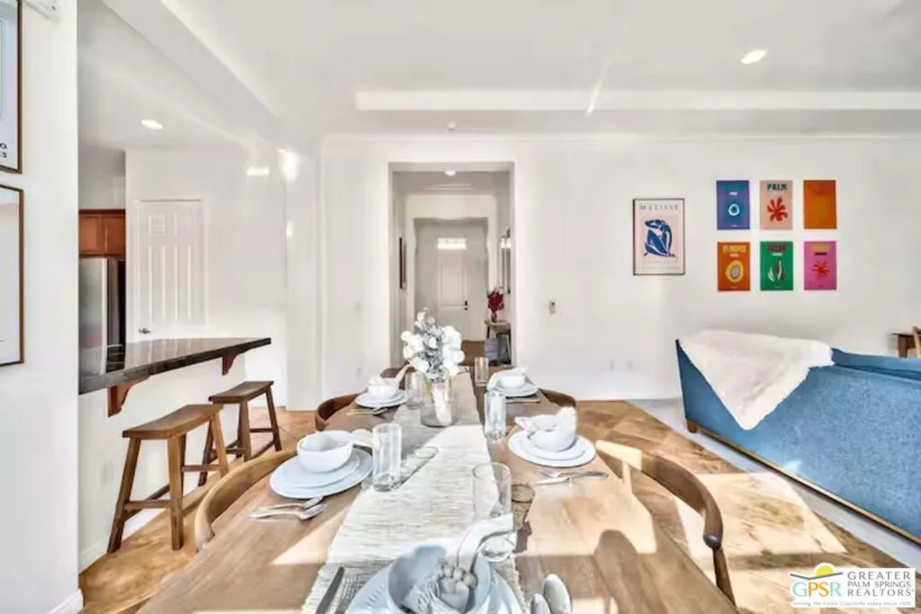 This is a Vacation Rental Property that is elegantly furnished with the best location against the East side of the South lap pool! This is the most euphoric part of the subdivision with the jagged Santa Rosa Mountains nearby and a view of one of the pools. Welcome to Puerta Azul, One of the most affordable communities in a multi million dollar area. Just 5 miles south of the iconic Empire Polo Club where The Coachella Valley Music and Arts festival is currently in session. One of the only communities in La Quinta that allows short term rentals. The current minimum rental is one day. Nearby world class golf, hiking, biking and Lake Cahuilla! Inside this immaculately cared for community lies lush manicured landscapes with whimsical mediterranean architecture where every home has a blue door! This is a fully detached single family residence with a garage. Featuring 2 beds, 2 baths, 1,375 SF, Lot 3,485 SF, gorgeous stone floor, high ceilings throughout, crown molding, tray ceilings, recessed lighting, ceiling fans, nest thermostat, 2 security cameras. Yard has access gate, Garage has door into the home. The furniture and bicycle made for two can be yours. Entertain at home, at the huge multipurpose rec. center, by one of the two pools and spas. Enjoy playing tennis in the community and the walking trail. The nest, thermostat, wifi doorlocks, and security cameras make this home really easy to manage from afar.