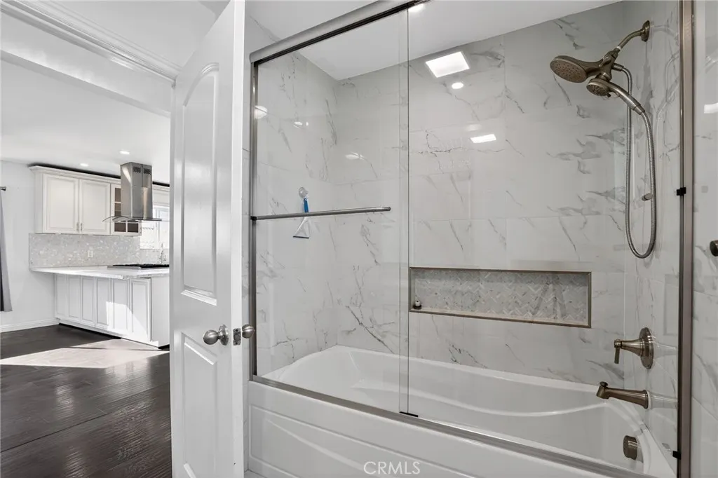 Additional highlights include wood flooring throughout, tastefully remodeled bathrooms, a dedicated laundry room, and an attached garage complete with an electric-vehicle charging station. The property also features mature fruit trees and multiple outdoor areas for gardening, relaxation, or al-fresco dining — all enhanced by the openness of the corner-lot setting.