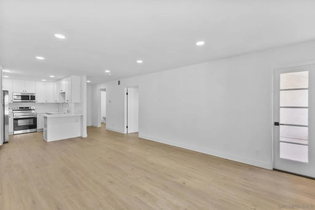 Fully remodeled top-floor 1 bed, 1 full bathroom plus an additional powder room, with brand new appliances—and the rare convenience of a private single-car garage and private on-site storage room! Step into a modern, move-in ready home featuring an open layout, luxury vinyl plank flooring, recessed lighting, and fresh paint throughout. The upgraded kitchen includes brand new quartz countertops, shaker-style cabinets, and all-new stainless-steel appliances including a refrigerator, dishwasher, electric range, and built-in microwave. The home offers a unique setup with three separate sink areas, a dedicated makeup vanity, and a beautifully updated shower. Enjoy indoor-outdoor living with a private balcony overlooking the pool and scenic mountain views. Located in a quiet, well-maintained community within walking distance to Fashion Valley Mall and minutes to Mission Bay, USD, downtown, and major freeways, and positioned next to the transformative Riverwalk development for exceptional convenience, future upside, and walkability. ***