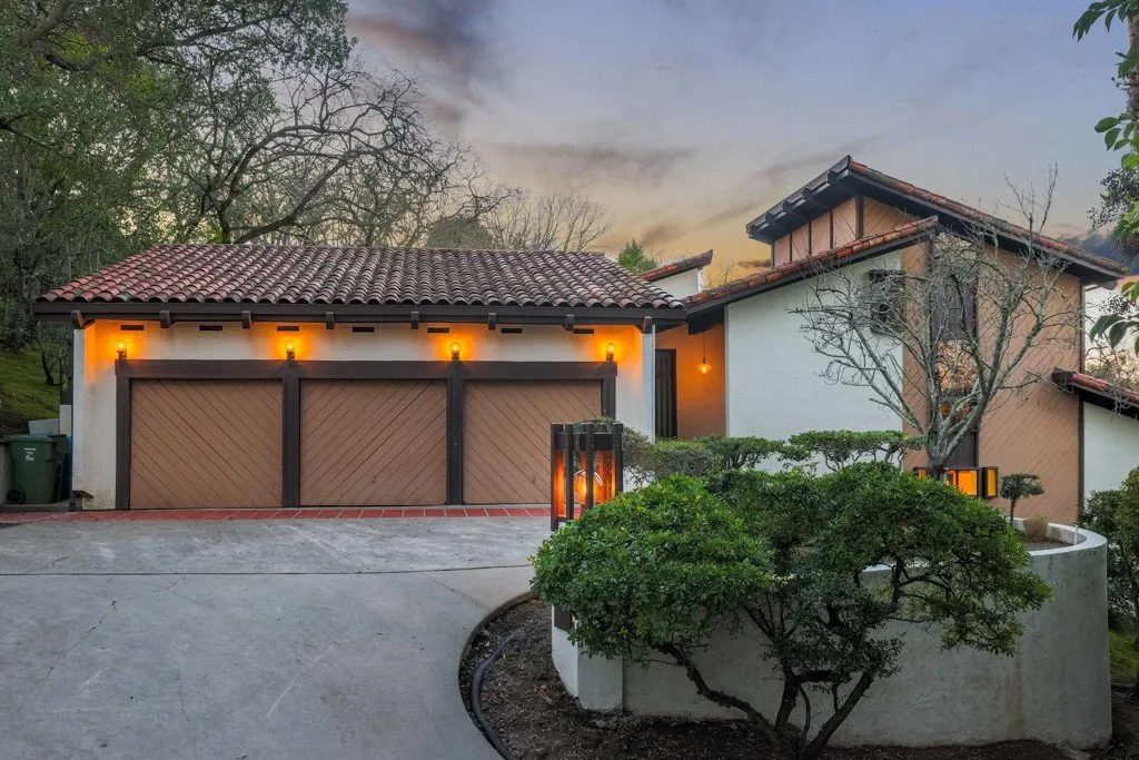 A distinctive architectural gem just minutes from downtown Lafayette, this elegant, expansive hill-view home boasts a unique and stylish design. Beautifully preserved original details, exposed beams, warm wood accents, dramatic soaring ceilings, and an open floor plan create a sense of space and light throughout. The home exudes authentic charm, offering solid construction and generous living spaces spanning approximately 4,093 square feet with five bedrooms and three full baths. There are two inviting living rooms—both with fireplaces, one highlighted by a remarkable stained-glass window—as well as a library, an office, and ideal spaces for both relaxation and entertaining. Walls of glass offer serene views of Happy Valley, creating a seamless indoor-outdoor flow, including access to a spacious deck perfect for even large gatherings. An expansive sport court offers endless possibilities for recreation, including pickleball, tennis, and basketball, while a three-car garage with an upstairs bonus room and abundant storage adds convenience. Surrounded by nature on a .53-acre lot, with space for a potential ADU, this tranquil sanctuary is an entertainer’s dream—combining privacy, character, and style. Conveniently close to BART and the beautiful Lafayette Reservoir.