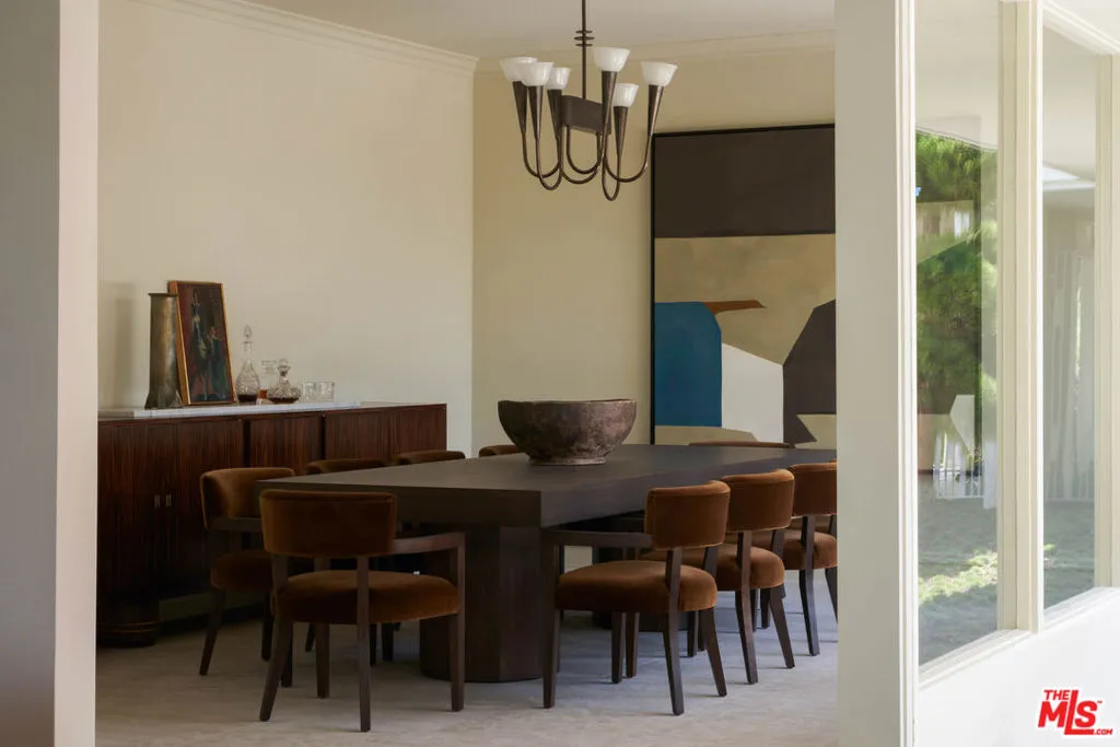 One of Trousdale’s finest mid-century architectural homes, OSKLO House is a rare 1966 estate by Benton & Parks, AIA, set on a flat half-acre lot with sweeping city views over West Los Angeles. Spanning approximately 6,200 square feet, the residence has been fully reimagined by OSKLO and is offered completely furnished as a turnkey masterpiece. A striking courtyard anchored by a sculptural fountain sets the tone upon arrival, leading to a dramatic front entrance. Inside, the living room makes an immediate statement with an oversized fireplace and floor-to-ceiling glass that floods the space with natural light. Throughout the home, a curated mix of custom OSKLO furnishings, museum-quality antiquities, and vintage pieces thoughtfully complement the refined materials and finishesno detail overlooked, no expense spared. The kitchen embodies elevated Beverly Hills living, featuring a breakfast nook, butler’s pantry, and a wall of windows that open seamlessly to a private garden. The exceptional primary suite is a sanctuary unto itself, highlighted by nearly $1 million in stonework and wraparound windows overlooking the backyard and distant city lights. A long gallery hallway with views into a Japanese-inspired atrium leads to three ensuite bedrooms. An additional ensuite bedroom near the kitchen, along with a pool bath adjacent to the outdoor cabana, makes the home ideal for hosting family and guests. Outdoors, the iconic angular pool pavilion offers multiple entertaining areas, a swimming pool, firepit, and outdoor barperfectly capturing the essence of Trousdale’s celebrated indoor-outdoor mid-century lifestyle.