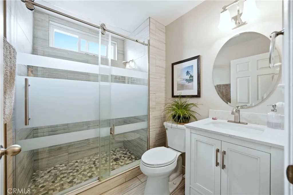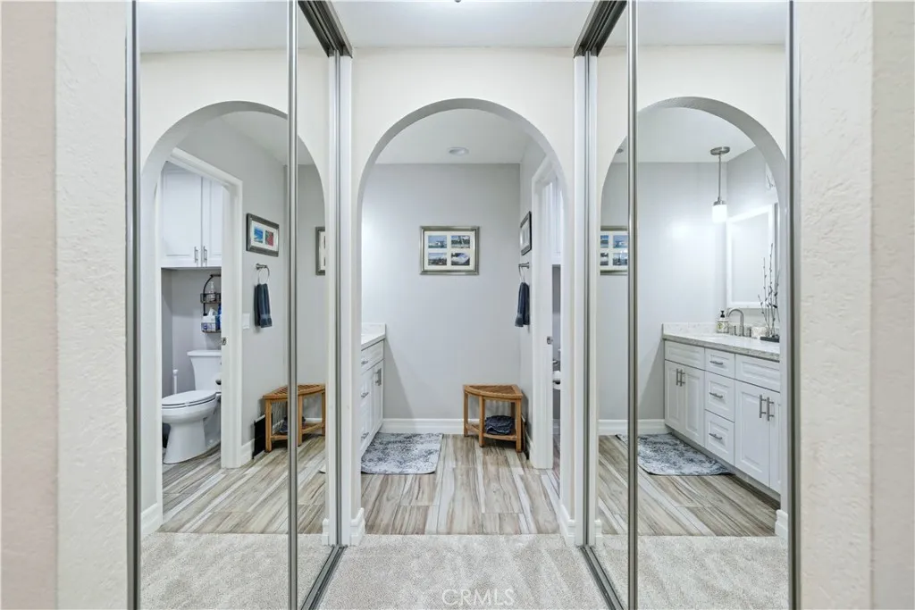 IT IS SO PEACEFUL AND QUIET, AND THERE IS THAT SENSE OF SECURITY…. When asked what the seller most enjoyed about this home; that was the answer. She could have said the fabulous location as an end unit on a cul-de-sac street with a huge greenbelt and a view of a park and trees near the main entrance and a Community Center. She could have said the convenience of a single story home. She might have said the remodeled bathrooms with quartz counters and backsplash, the tile showers with dual barn style sliding glass doors, soft close/dovetail joint construction shaker style cabinet drawers, the tile flooring or the recessed can lighting. I may have emphasized the fresh paint, the textured ceilings, the Decor plugs and switches, the raised panel doors, the oversized baseboards, the engineered wood flooring, the plantation shutters, the dual paned vinyl windows and sliders or opening up the wall between the kitchen and the dining room to help create that popular great room affect. The third bedroom has been converted to a den. Of course, everyone knows about the Casta del Sol lifestyle and the magnificent amenities this 55+ community has to offer. It is hard to find something you cannot do. Normal things like tennis, swimming, spa/hot tub, pickleball, clubhouse and gym/exercise/weight room are a given. Card rooms, billiard rooms, craft rooms, recreation rooms, lawn bowling, gardening, a library, numerous clubs and activities all make it easy to get out and socialize if that is your interest. Bang for your buck? Your HOA dues include community management, front yard maintenance, exterior painting and trash pickup which all contribute to reduced stress and a carefree environment. Membership to Lake Mission Viejo with its Summer Sunset Concert Series, fireworks display, boating, swimming, occasional fishing and the annual “Taste of the Lake” is included. And we have not even begun to talk about living in Mission Viejo and shopping at Mission Viejo Mall, the convenience of the nearby Mission Hospital with its Trauma Center, the opportunities for travel using the Metrolink or John Wayne Airport, the proximity of world famous destination beaches or the equal distance to cultural and sporting events in either Los Angeles or San Diego. Do yourself a favor and come take a look. You won’t be sorry if you do.