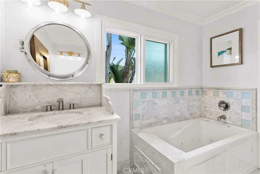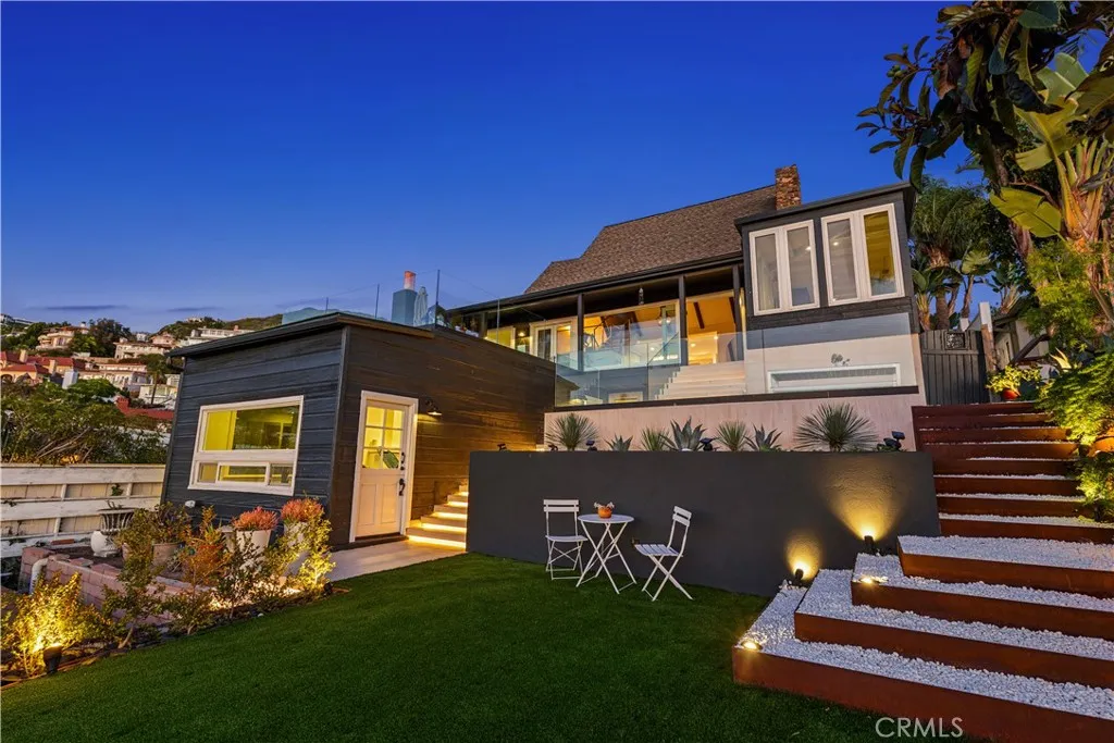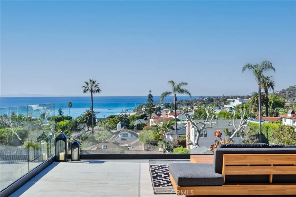 Beautifully updated modern coastal residence spanning over 4,000 square feet, ideally located minutes from Laguna’s renowned beaches, shopping, and dining. Designed as an exceptional family home, the property is framed by expansive white-water ocean views of Main Beach and a lush mountainside backdrop. The light-filled, open-concept layout features soaring beamed ceilings and a living room with new limestone flooring that flows seamlessly to the ocean-view deck, creating an effortless indoor-outdoor connection. The chef’s kitchen is bright and refined, appointed with new Taj Mahal quartzite countertops, seamless white cabinetry, and newly installed top-of-the-line appliances, with carefully curated finishes throughout, opening to an elegant dining area. This home offers four bedrooms and three bathrooms, along with a fully equipped fitness room, laundry area, alkaline water filtration, and modern conveniences throughout. The primary suite is a private retreat with a spa-inspired bath, dual vanities, and a secluded office surrounded by windows capturing stunning ocean views. Additional features include a bonus room, private backyard, and a two-car garage. Offering privacy, sophistication, and modern comfort, this newly updated home is a serene sanctuary just moments from the vibrant energy of Downtown Laguna.