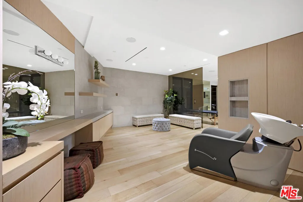 Perched atop a gated promontory in the hills of Beverly Hills, 1731 Summitridge Drive is a striking modern estate that seamlessly blends luxury, wellness, and design. Spanning over 10,500 square feet, this fully furnished residence features 5 spacious bedrooms and 7 elegantly appointed bathrooms. Thoughtful details include a chef’s kitchen with a walk-in refrigerator, wine cellar, 13-seat private theater, full-service spa with beauty salon and Himalayan salt room, and a rooftop deck with sweeping views from the city skyline to the ocean. Smart wellness technology from Delos enhances daily living with air and water purification, circadian lighting, and posture-supportive flooring. Just minutes from the Beverly Hills Hotel and Rodeo Drive, this home offers a rare combination of privacy, sophistication, and resort-style amenities.
