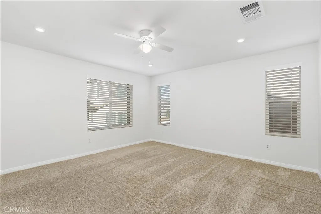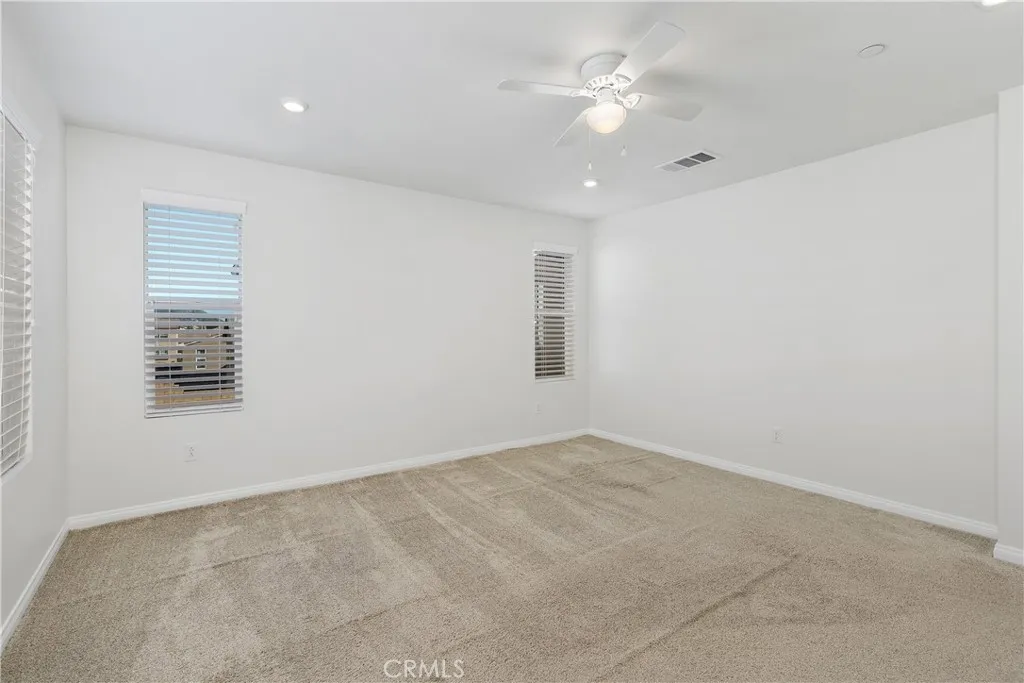 Look no further! This freshly painted, beautiful newer construction home is spacious and bright. Elegant entrance hall brings you to the open concept great room. A bright white kitchen comes furnished with stainless steel appliances. Dine at the breakfast bar or more formally in the spacious dining space off the kitchen and adjacent to the main living area. The backyard is located on the north side of the property. Keeping it shaded most of the day. It features beautiful pavers and the space is perfect for al fresco dining and enjoying the coveted California outdoor lifestyle. All three bedrooms are upstairs. The primary bedroom has an en suite bathroom with private water closet, extra-large walk-in closet, walk-in shower, and soaking bathtub. The two secondary bedrooms share a spacious full bathroom with a shower/tub combo. The laundry room is conveniently located upstairs. Lastly, the home features fully owned solar panels and an EV charger in the spacious two car garage; saving the owner money on monthly utilities. The community is immaculately maintained and features a picnic area, playground, and small dog park. Do not miss this opportunity!