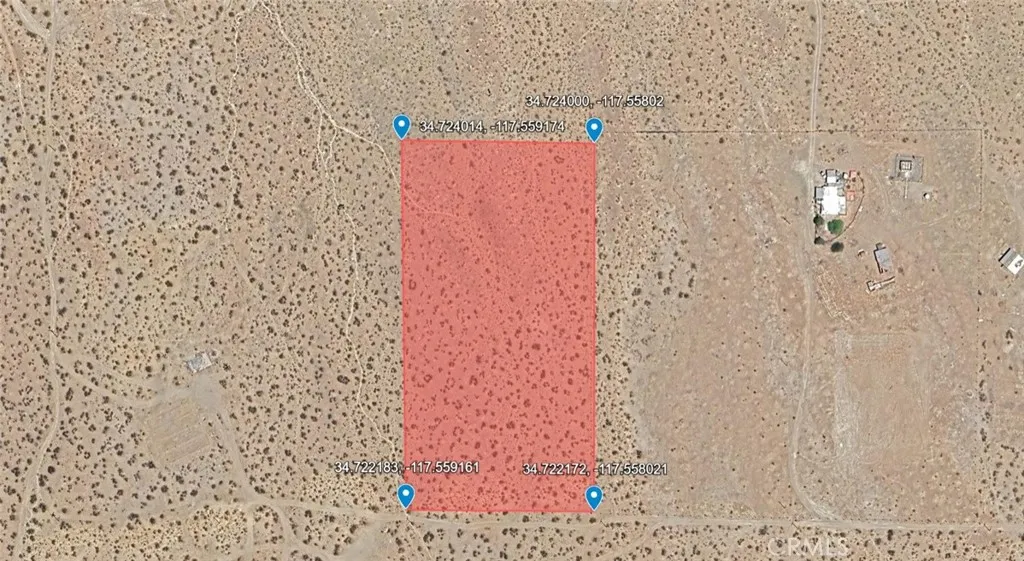 5 acres zoned Residential Vacant Land ready for your vision. Land parcel identified by APN:0462-191-47-0000. No situs address assigned by county; address shown is for MLS input only. GPS coordinates: 34.723096, -117.558596. Buyer to verify zoning, permitted uses, and utility availability.