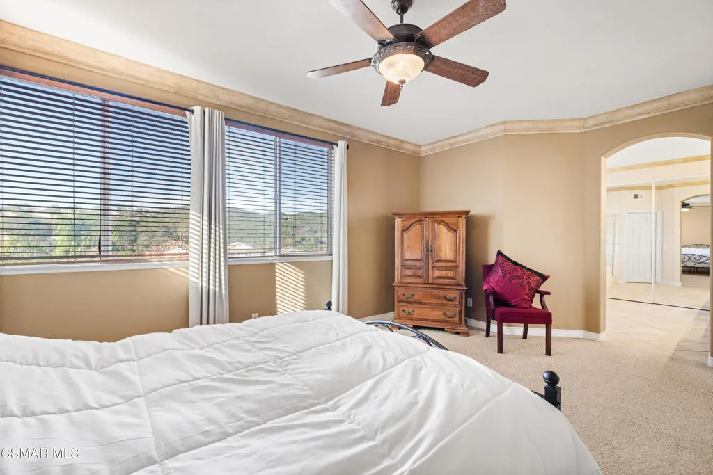 Welcome to 615 Camino del Lago, Newbury Park, a beautifully upgraded two-story home tucked away on a quiet cul-de-sac in the highly desirable Dos Vientos community. This spacious 5-bedroom, 3-bathroom residence offers breathtaking mountain views and a thoughtfully designed floor plan perfect for modern living.A charming stone walkway leads to the front door, where you’re greeted by a light-filled living room featuring soaring ceilings, recessed lighting, and elegant wood flooring. The formal dining area showcases tasteful decorative finishes and flows seamlessly into the updated kitchen, complete with a breakfast bar, abundant cabinetry, and generous storage. The kitchen opens to the inviting family room–ideal for everyday living and entertaining.The main level includes a convenient bedroom and full bathroom, perfect for guests or a home office. Upstairs, you’ll find four additional bedrooms, including a stunning primary suite with a large walk-in closet, spa-inspired bathroom with a soaking tub, separate shower, and spectacular mountain views. The upstairs laundry room adds ease and functionality.Step outside to a private backyard oasis featuring panoramic mountain views, drought-tolerant landscaping, and a spacious patio with a built-in BBQ–perfect for entertaining or relaxing while taking in the scenery. Residents also enjoy access to the community pool and spa.This exceptional home offers comfort, style, and an unbeatable location–don’t miss this incredible opportunity, it won’t last!