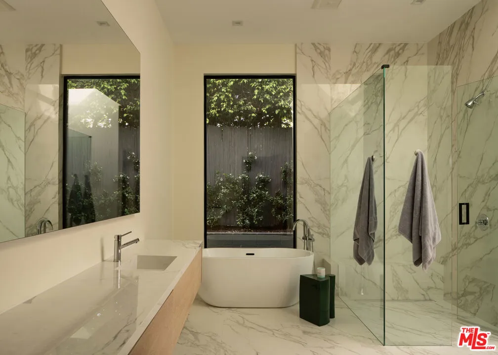 Located in the most prime section of Beverly Hills behind private gates on over half an acre of flat, fully usable land, this single-story contemporary residence blends architectural character with warm, livable design. Soaring 12-foot ceilings and skylights throughout create an open, sunlit flow from the kitchen to the family room, anchored by a wet bar and floor-to-ceiling pocket doors that open seamlessly to the grounds. The home’s four bedrooms include a dramatic primary suite with retractable glass walls overlooking the pool and lush landscaping cultivating an effortless indoor-outdoor connection that defines the California lifestyle. The pool and spa serve as the centerpiece of the outdoor living space, offering a tranquil backdrop for daytime lounging and evening gatherings. Designed for both everyday living and entertaining, the home features a professional movie theater with stadium seating, a custom bar, and multiple outdoor gathering areas framed by mature trees for total privacy. Additional highlights include a 3-car garage, ample guest parking, and an exterior carport for security. At twilight, the property glows with its modern lines and layered landscape lighting creating a resort-like ambiance in the heart of Beverly Hills.