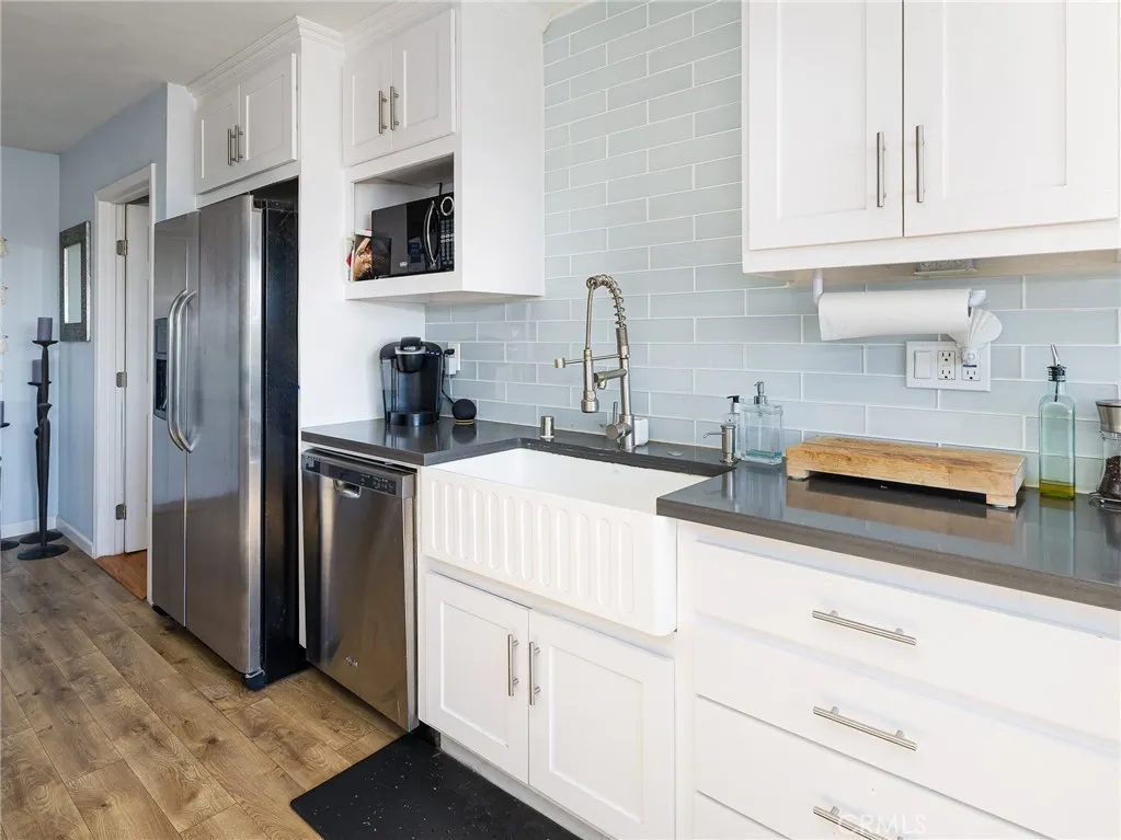 The home features updated flooring throughout the main living spaces, double paned-windows, and recessed lighting across the entire unit. The remodeled kitchen is a standout, showcasing a large center island with seating for four barstools, stove, oven, dishwasher, and fantastic views.