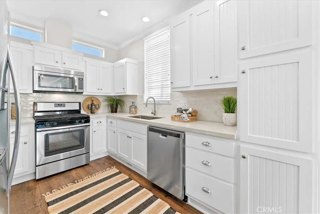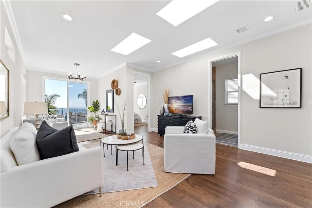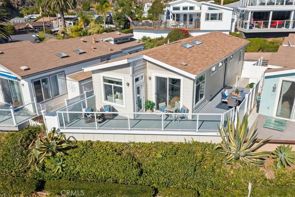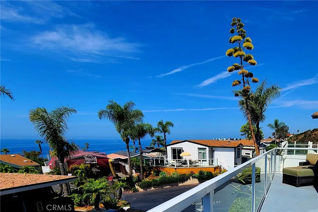 “Sea” the best ocean, island & sunset views from nearly every inch! Awaken to the ocean. Fall asleep to sunsets. Here’s coastal living at its finest: A turnkey, modern beach home with 180° panoramic view. A quiet location – protected from noise of hwy and parking. Luxury constructed with high ceilings and doors. Filled with light from skylights and clerestory windows. A fresh, cool, neutral interior. All new quartz counters and faucets. An open-concept great room of living, dining, kitchen, and niche. Outstanding outdoor living with wrap-around deck, green faux-lawn at entry and side yard, and a bearing orange tree. Two bedrooms with walk-in closets. Bedroom I with incredible ocean views. Bedroom II “seas” the big blue thru its entry and mountains thru its window. Home is fully-fenced with a gated parking space and dog run. Plus, convenient 2-car parking at its front gate. | This is the quintessential turnkey beach home. It includes A/C and all appliances. Its furnishings and decor may be purchased, as well. | Located in terrific Laguna Terrace! Enjoy fun and relaxation at your doorstep. Amenities include a fabulous community clubhouse; heated-year-round pool and spa; well-equipped gym; event room with fireplace lounge; kitchen; WIFI and patios. Plus, impeccable staff who keep it in tip-top shape. | And, leave the car behind! This home is perfectly situated: Above Aliso Plaza shops and dining. Across PCH from The Montage Resort and Treasure Island paths, beach, and tidepools. Around the corner from Aliso Beach on-the-sand Lost Pier Cafe and The Ranch Resort golf course. Then, travel by trolley thru Laguna and neighboring coastal towns. Board a boat to Catalina Island from Dana Point Harbor. And, don’t miss the Festival of Arts, Pageant of the Masters, Sawdust Festival, outdoor concerts, and so much more. It’s great for all ages: within the prestigious Laguna Beach School District, plus classy downtown Susi Q Senior Center. | This is an incredible value. To buy on fee land in Laguna, you’d pay about $3,000,000 plus $33,000 yearly tax. In Laguna Terrace, it’s just $457,000 plus $5,250/month land lease with tiny annual tax. And, it may qualify for the $7,000 Homeowner’s Exemption. Don’t miss this value. Come “seas” the day!