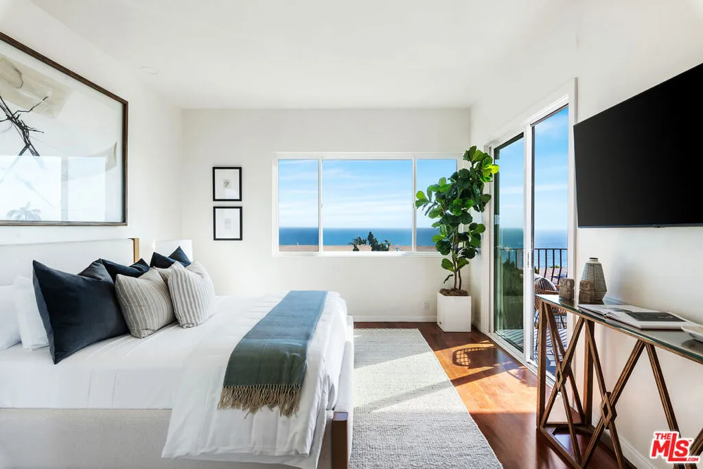 With stunning ocean views from nearly every room, this beautiful coastal condo is located in the highly desirable Sunset Mesa neighborhood. The main living room features sweeping Pacific vistas and opens to a spacious balcony, perfect for relaxing or entertaining. A dedicated dining area with more spectacular views leads into the recently remodeled kitchen, which includes quartz countertops, brand-new stainless-steel appliances, and custom cabinetry. The guest bedroom is spacious and bright, accompanied by an updated bathroom with a large soaking tub. The primary suite offers a continuation of views along the coastline, with a private balcony overlooking the iconic Queen’s Necklace and a tastefully updated ensuite bathroom with a dual vanity. Designed to maximize the breathtaking surroundings, this condo includes new windows and sliding glass doors, enhancing the coastal lifestyle in Sunset Mesa. Additional amenities include in-unit laundry, two parking spaces, ample guest parking, and low HOA dues covering earthquake insurance, water, sewer, and trash. Just minutes from Palisades Village and the Getty Villa, this condo offers the perfect blend of convenience and serene beach living.